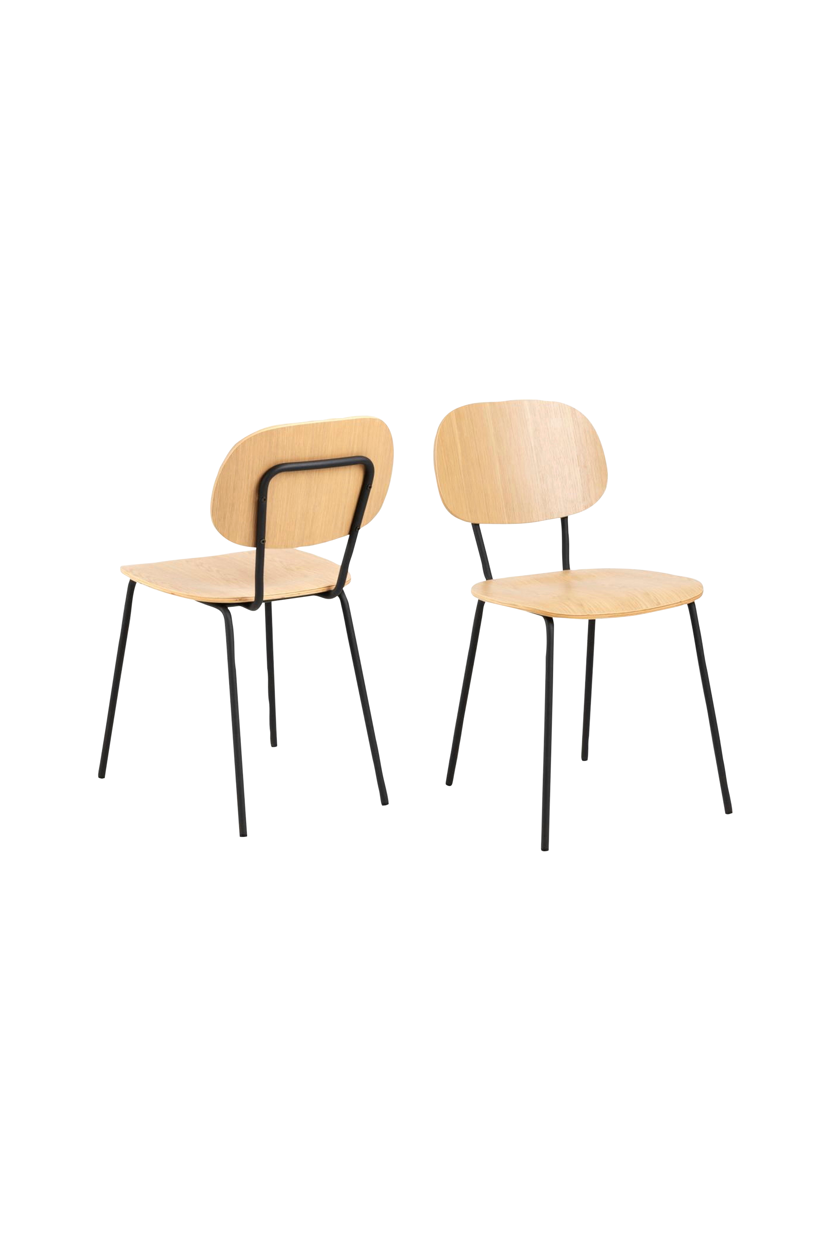 Med minimalistisk retrostil giver denne spisebordsstol din bolig et urbant udtryk. Det runde ryglæn og sæde af egefinér kombineres med en stel af sort metal. Kombinationen giver den et diskret, urbant udtryk.