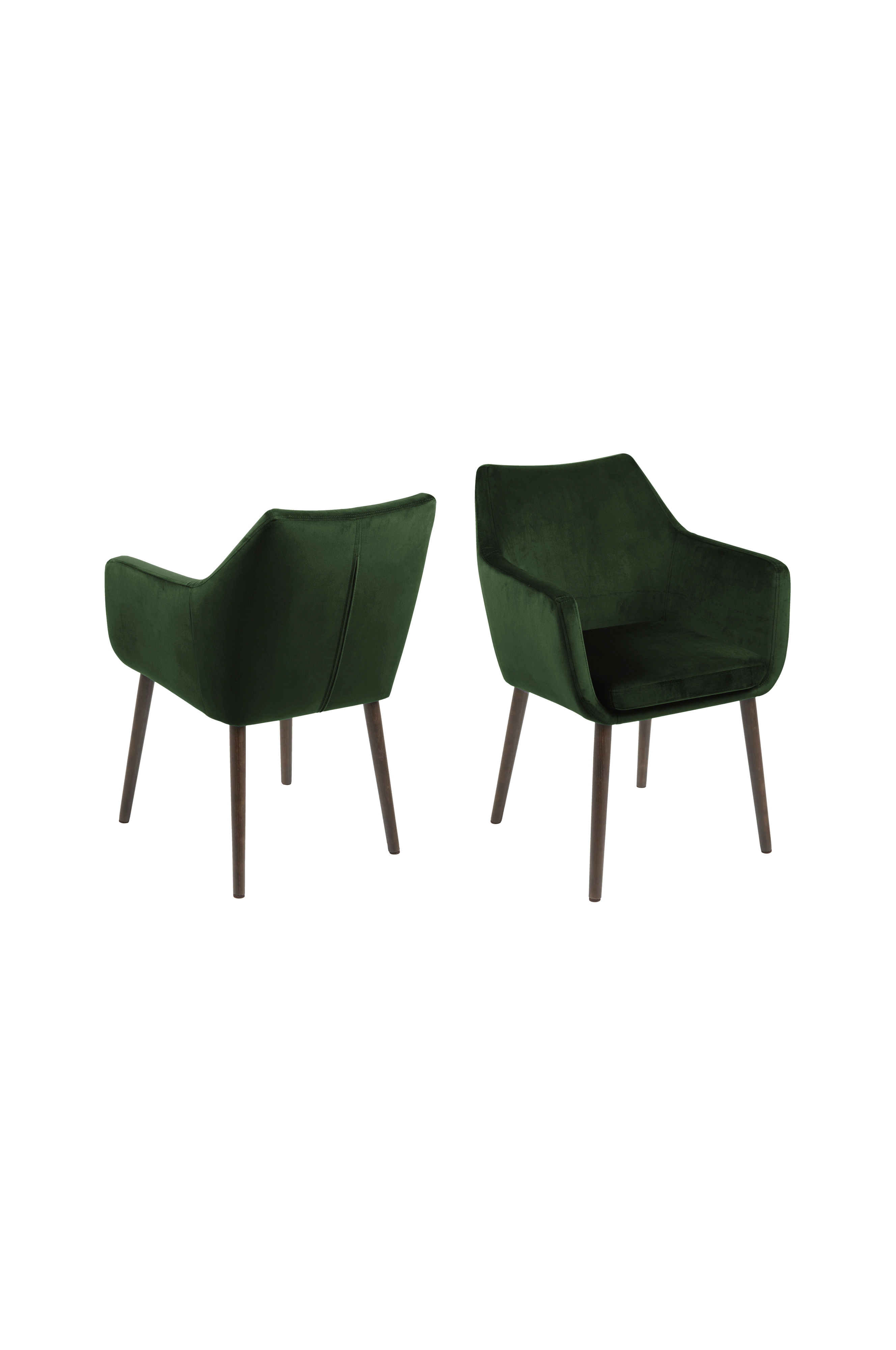 Spisebordsstol Laura med ben i massiv eg. Sæde polyeterpolstring og betræk i 100% velourpolyester. Mål: højde 84 cm, dybde 58 cm, bredde 58 cm. Siddehøjde 49 cm. Leveres usamlet.