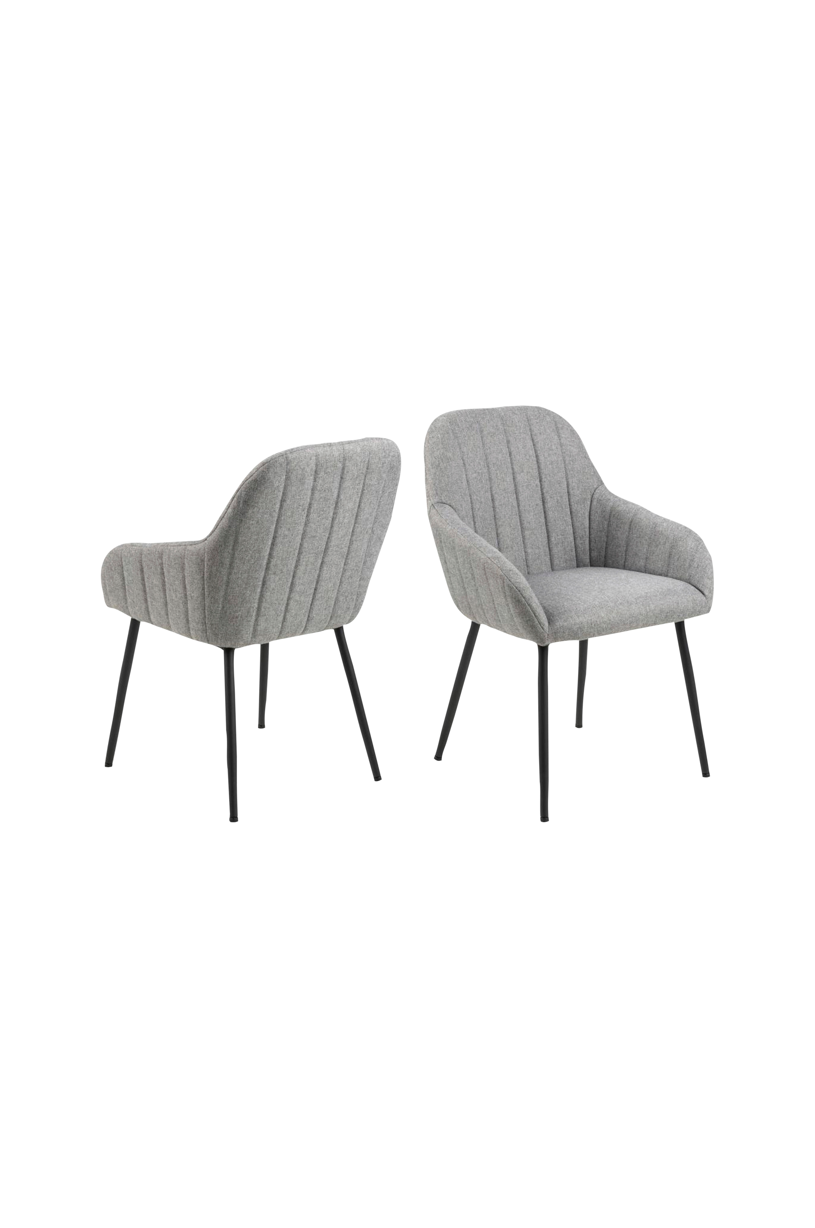En spisebordsstol som giver både komfort og stil? Du har fundet den. Spisebordsstolen er beklædt med et klassisk, fladvævet stof i grå farve som er både slidstærkt og alsidigt. Et robust, pulverlakeret metalstel komplementerer det lysegrå stof perfekt. Og læg mærke til de lodrette sømdetaljer - de gider stolen det lille ekstra. Er du ikke enig? Leveres samlet.