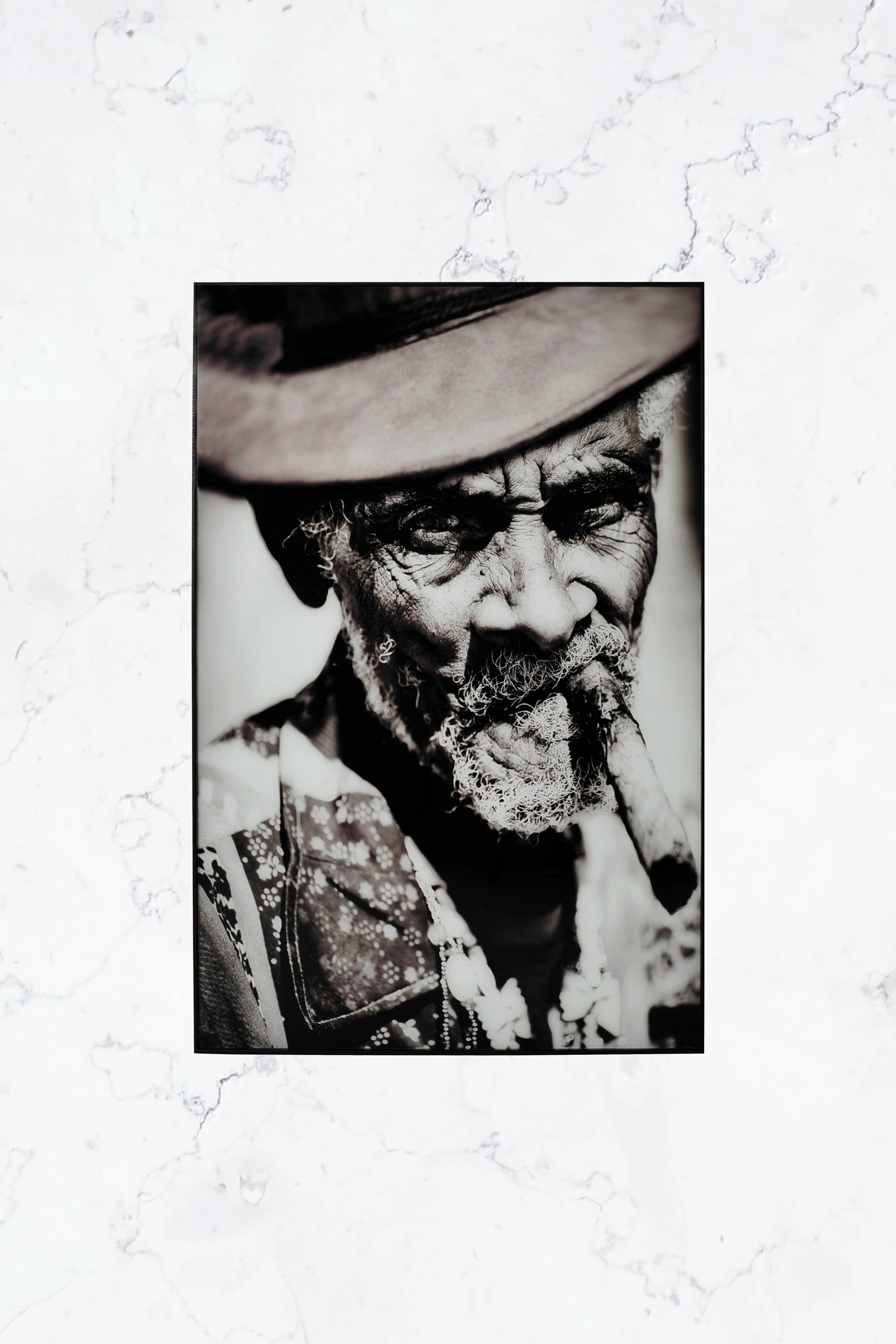 Billede med kraftig træramme og glas. Bredde 80 cm, dybde 3,5 cm og højde 120 cm.