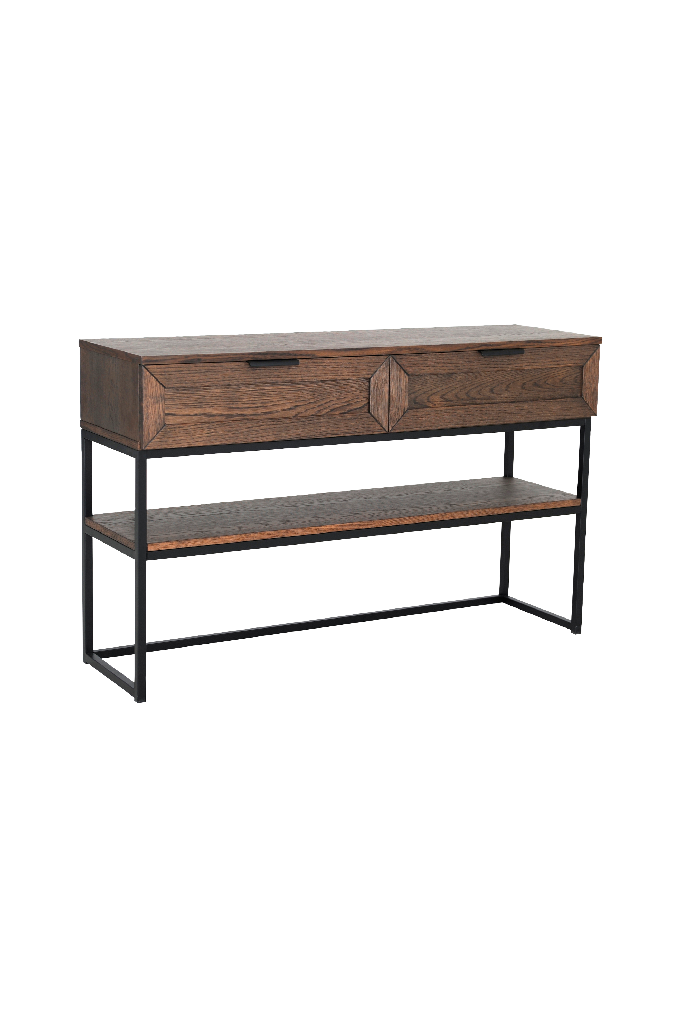 Elegant og praktisk konsolbord med 2 skuffer.Bordet er fremstillet af lakeret eg og metal.Varen kræver samling.