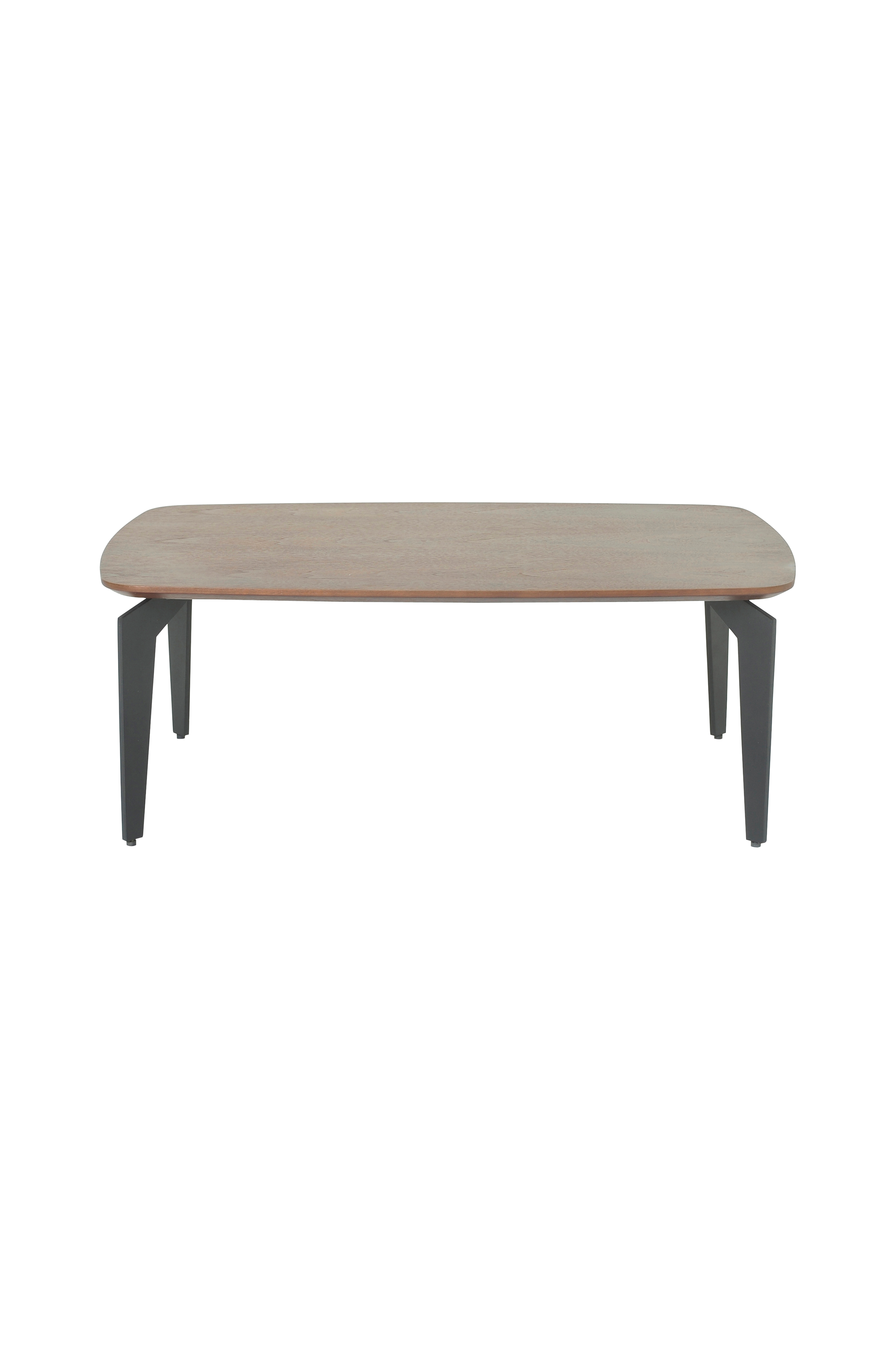 Sofabord med bordplade i valnød og lakerede metalben. Mål; 59x85 cm, højde 32 cm. Leveres usamlet.