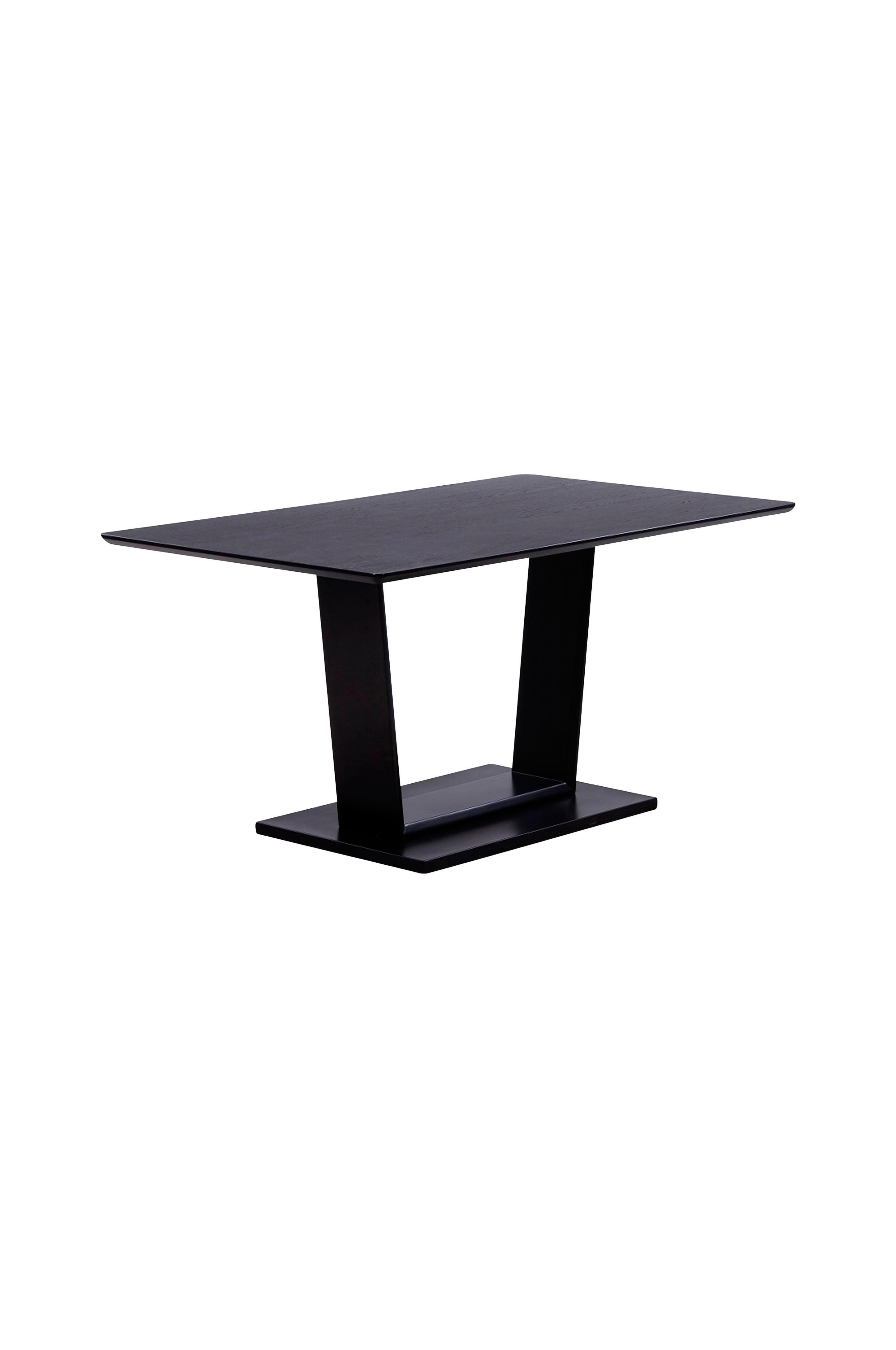 Spisebord i lakeret ask/MDF/melamin. Understel af metal.
