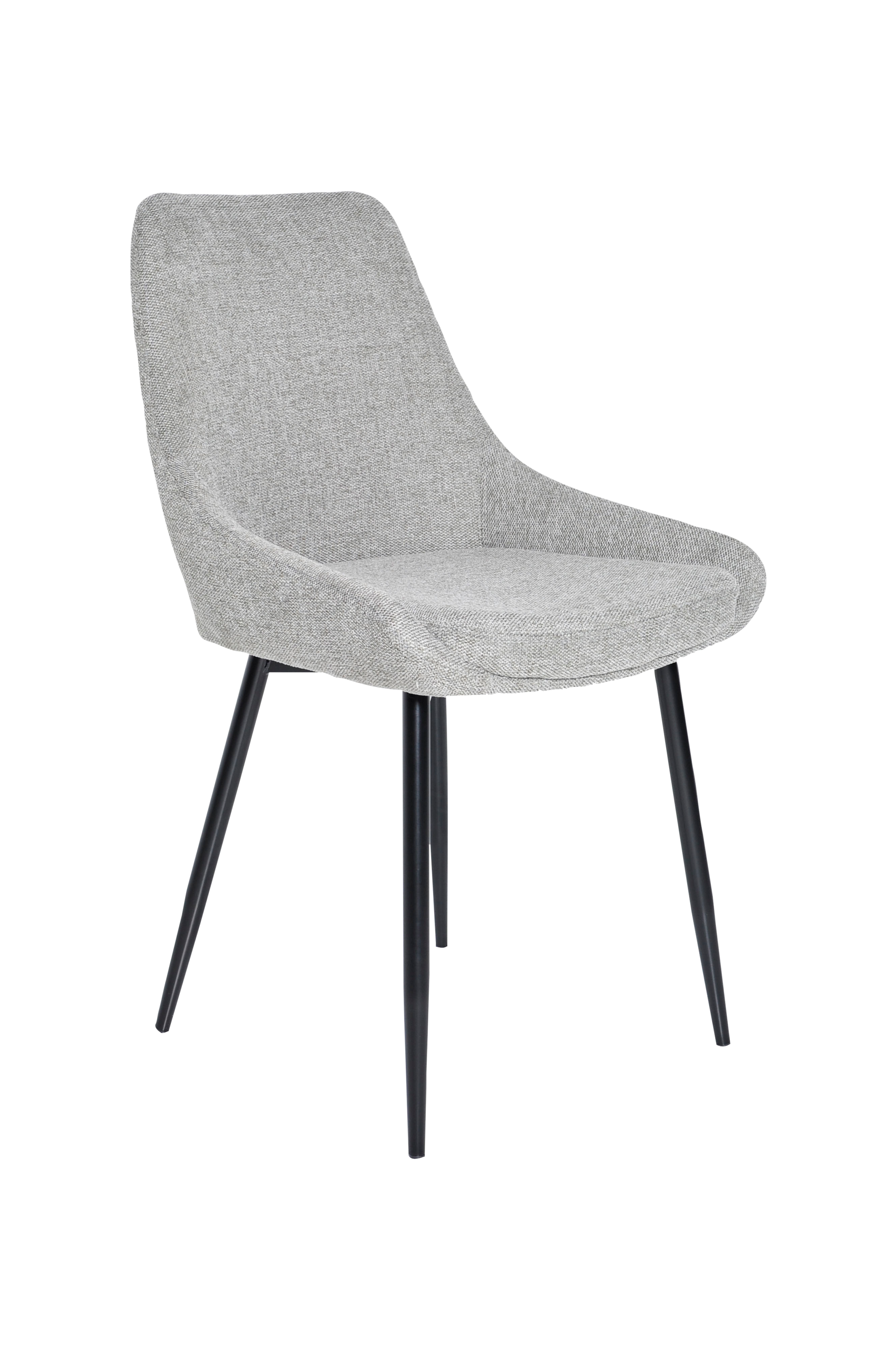 Spisebordsstol i stof med ben af lakeret metal.Leveres 4 i en pakke.Bredde 49,5 cm, dybde 56 cm og højde 86 cm.Usamlet.