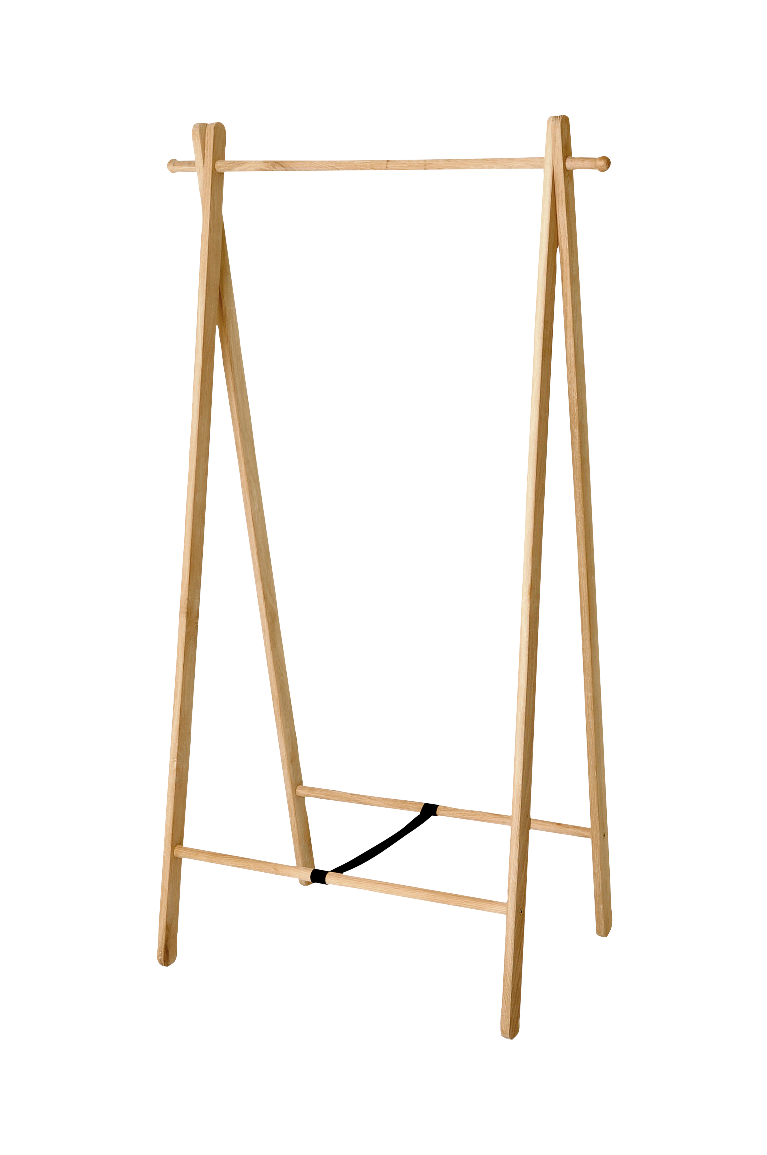 Tøjstativ i lakeret eg og kunstlæder.Leveres usamlet.
