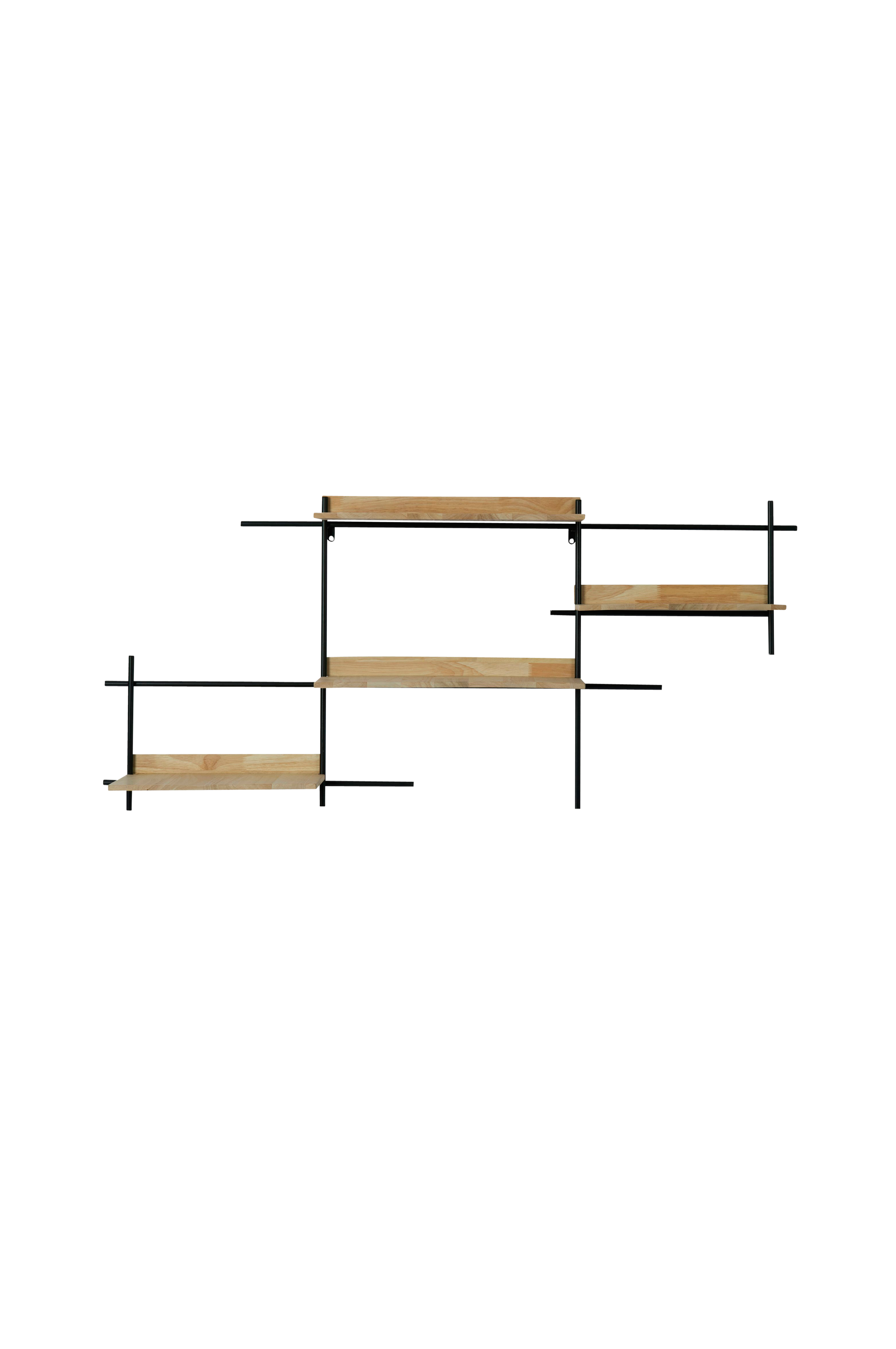 Dekorativ væghylde i lakeret hevea/gummitræ og metal.Bredde: 117 cm, Dybde: 16 og Højde: 50 cm.