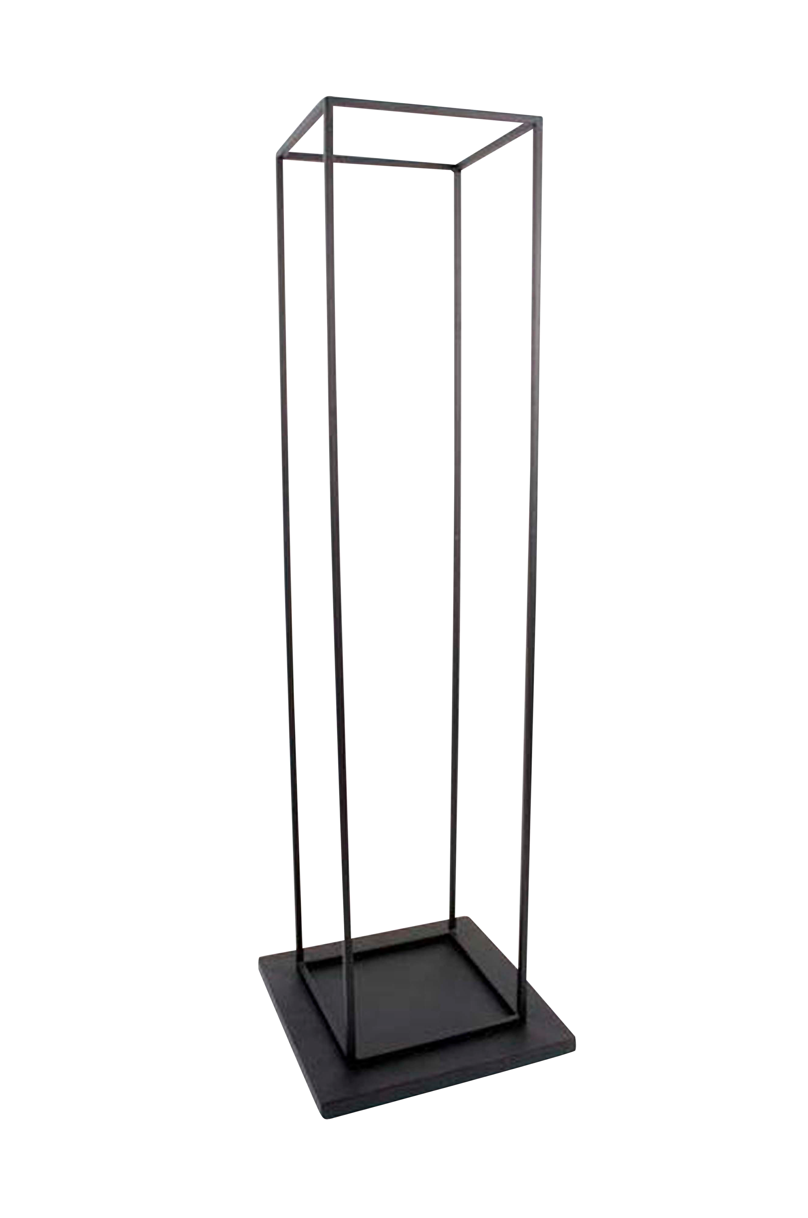 Brændestativ i sort smedejern.Højde: 115.Mål forneden: 35 x 35 cmMål foroven: 23 x 23 cm.