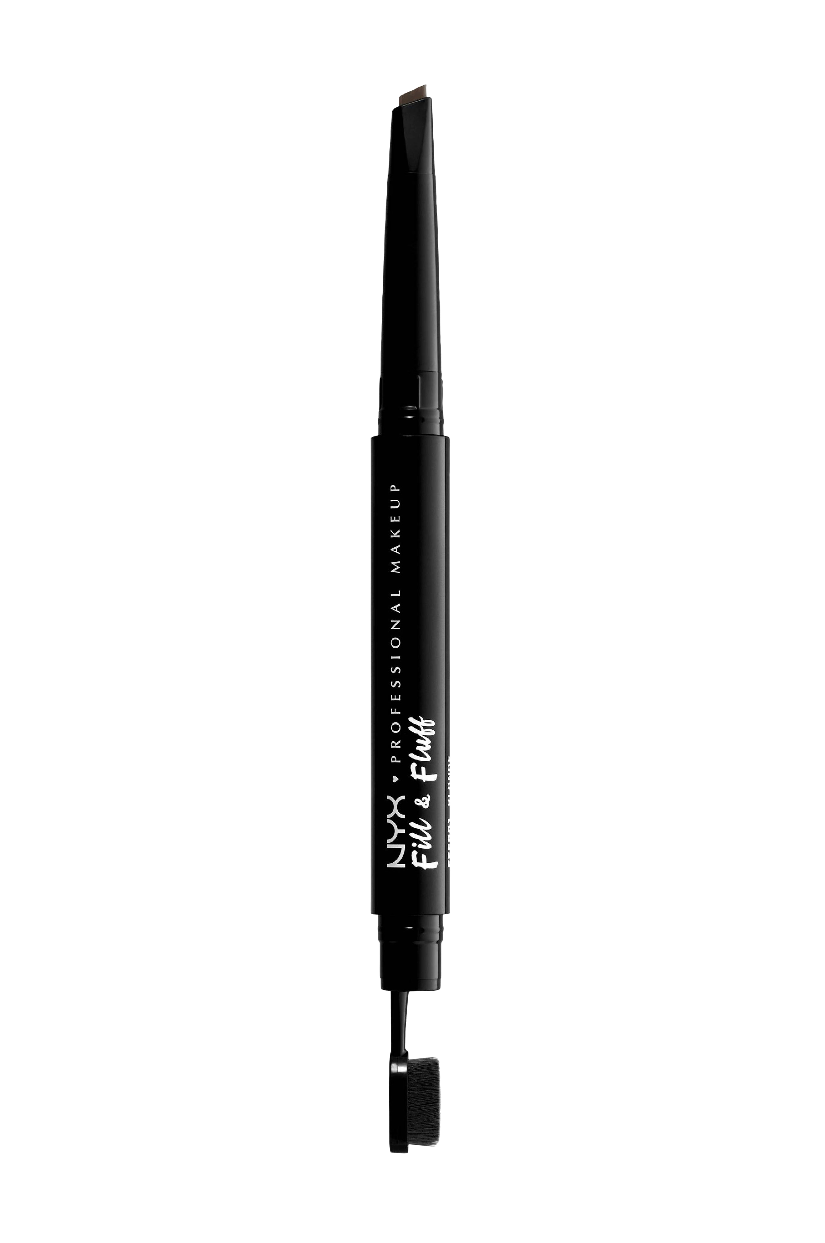 NYX Professionals nye dobbeltsidede Fill & Fluff Eyebrow Pomade Pencil har en mekanisk dråbeformet ende med en pomade til at påføre farven og i den anden ende en padleformet pensel i mikroformat. Fås i otte matte farver + klar med en blød vokskonsistens med en pigmenteret finish. Perfekt til at skabe et simpelt "Boy brow" og opbygge letkontrolleret volumen.