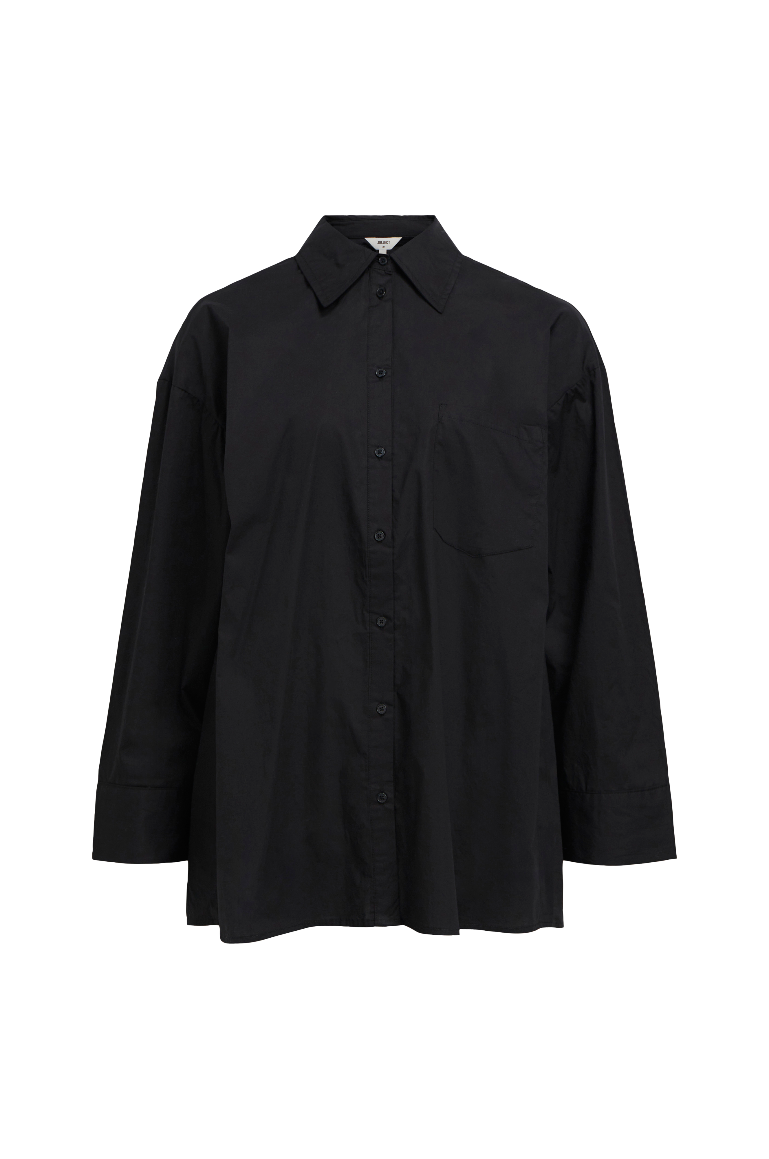 • Oversize model• Samling med volant bagpå• Knapper foran• En brystlomme• Langt ærme med manchet