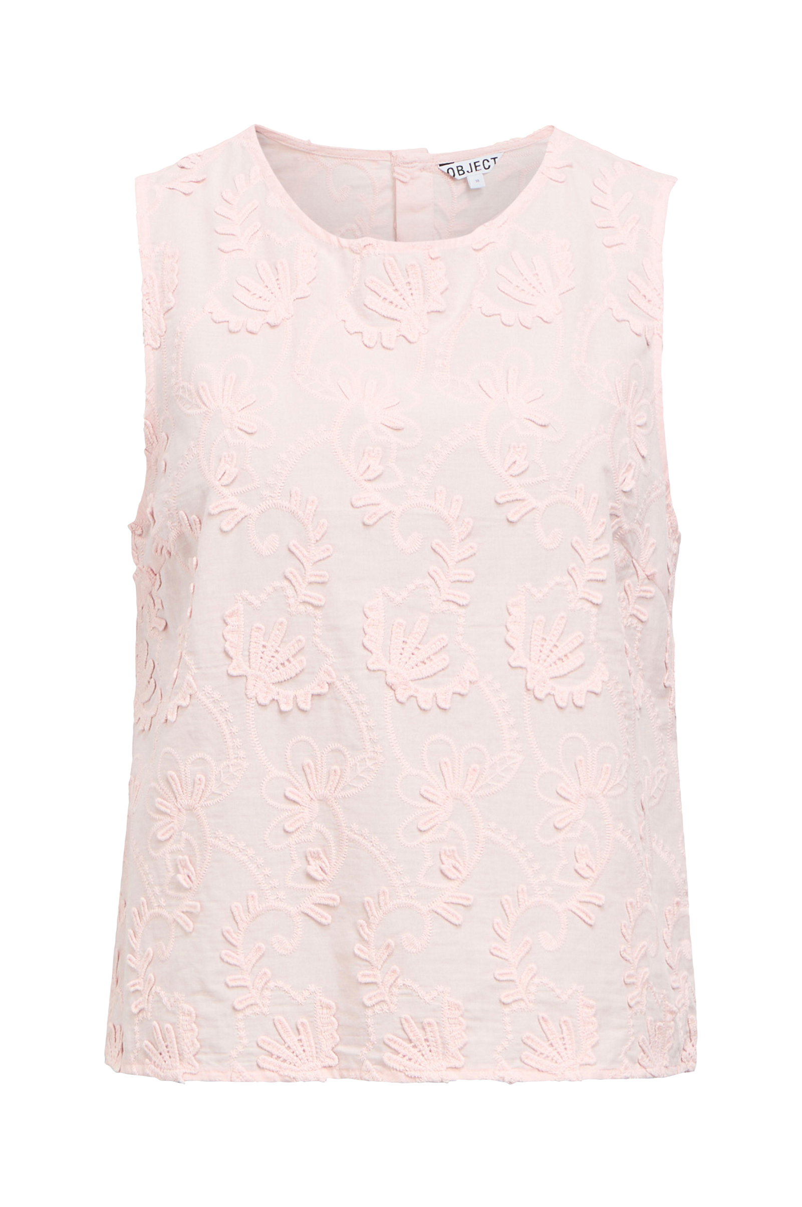 • Ærmeløs bluse• Broderede detaljer• Rund halsudskæring• Knaplukning foran bagpå