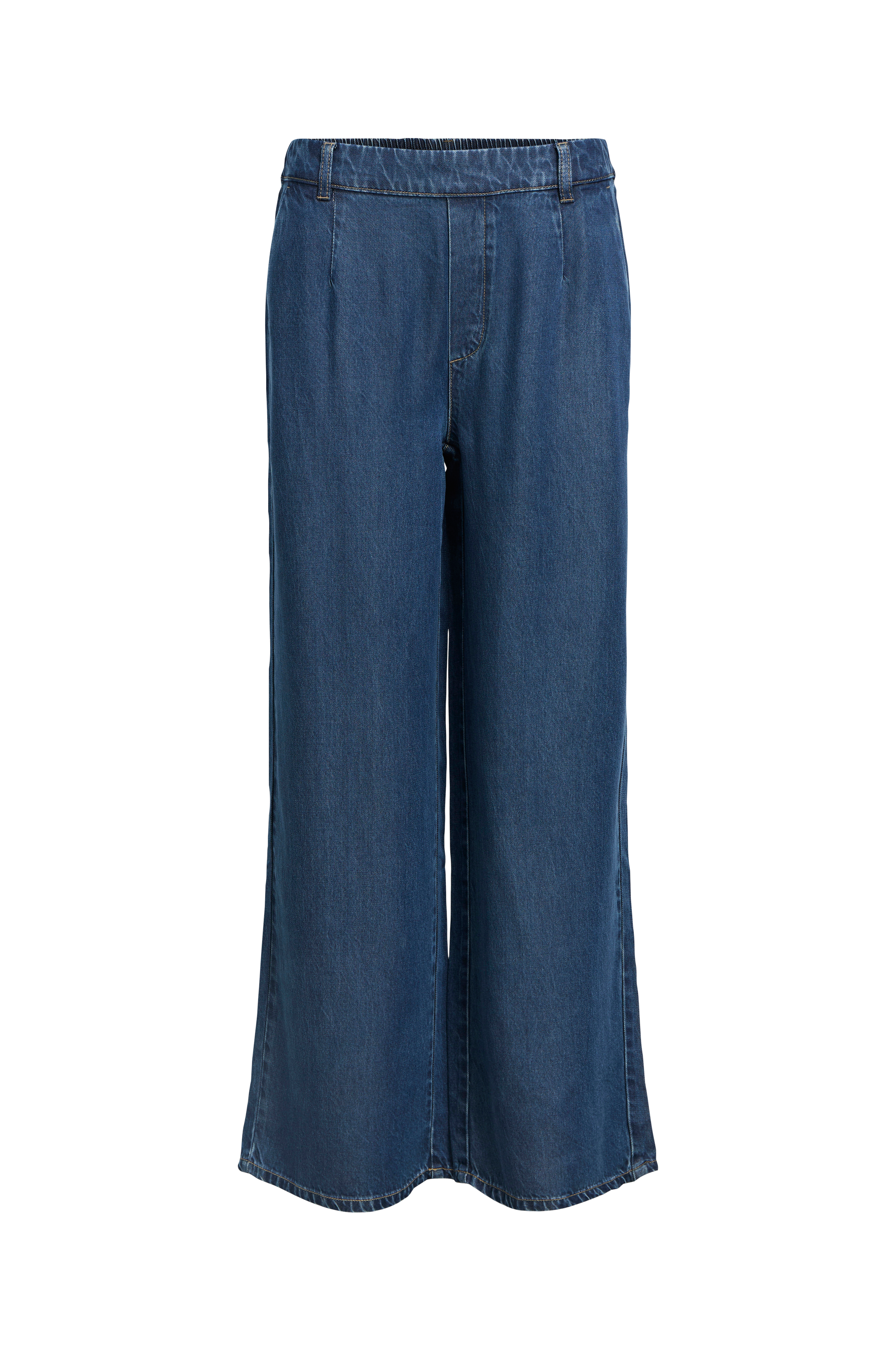 • Bukser med denimlook• Brede ben• Mediumhøj talje med elastik bagpå• Stropper• Sidelommer• Snydelommer bagpå• Indre benlængde: 78 cm i størrelse S