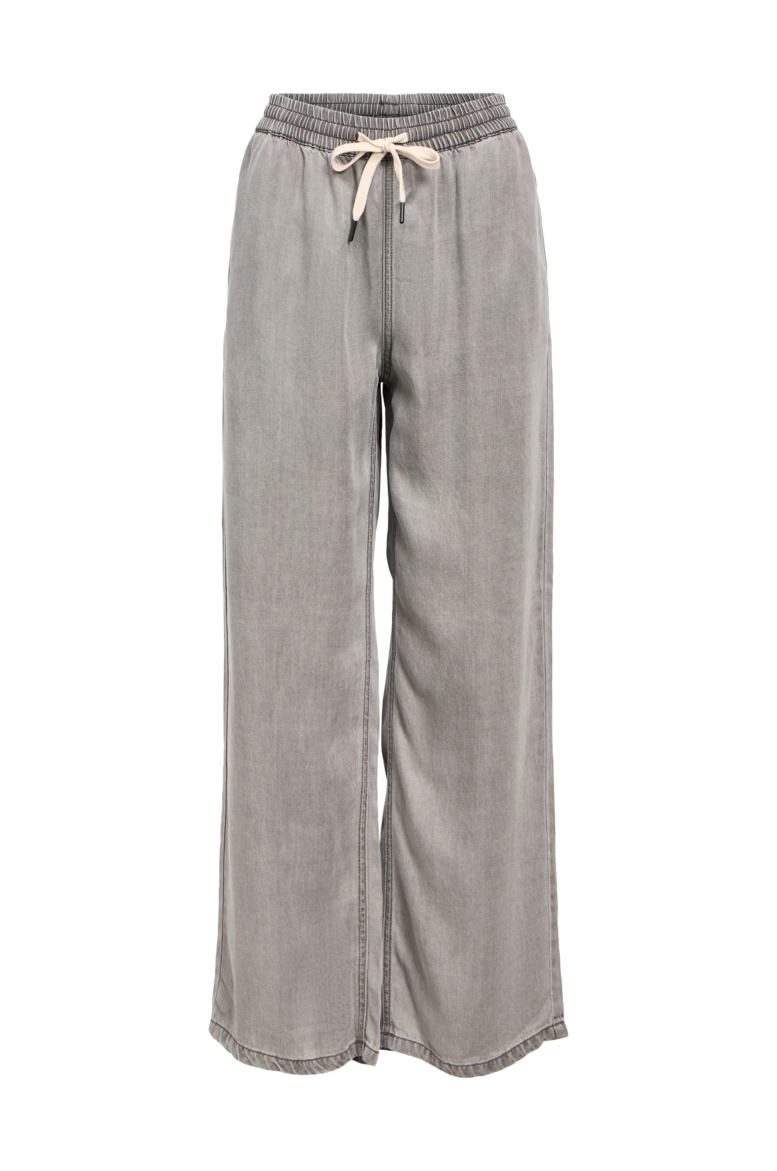 • Bukser i fleksibel, blød denim med lige, brede bukseben• Lommer i siderne• Elastik med træksnørre ved taljen• To lommer bagpå• Indre benlængde: 75 cm i størrelse S