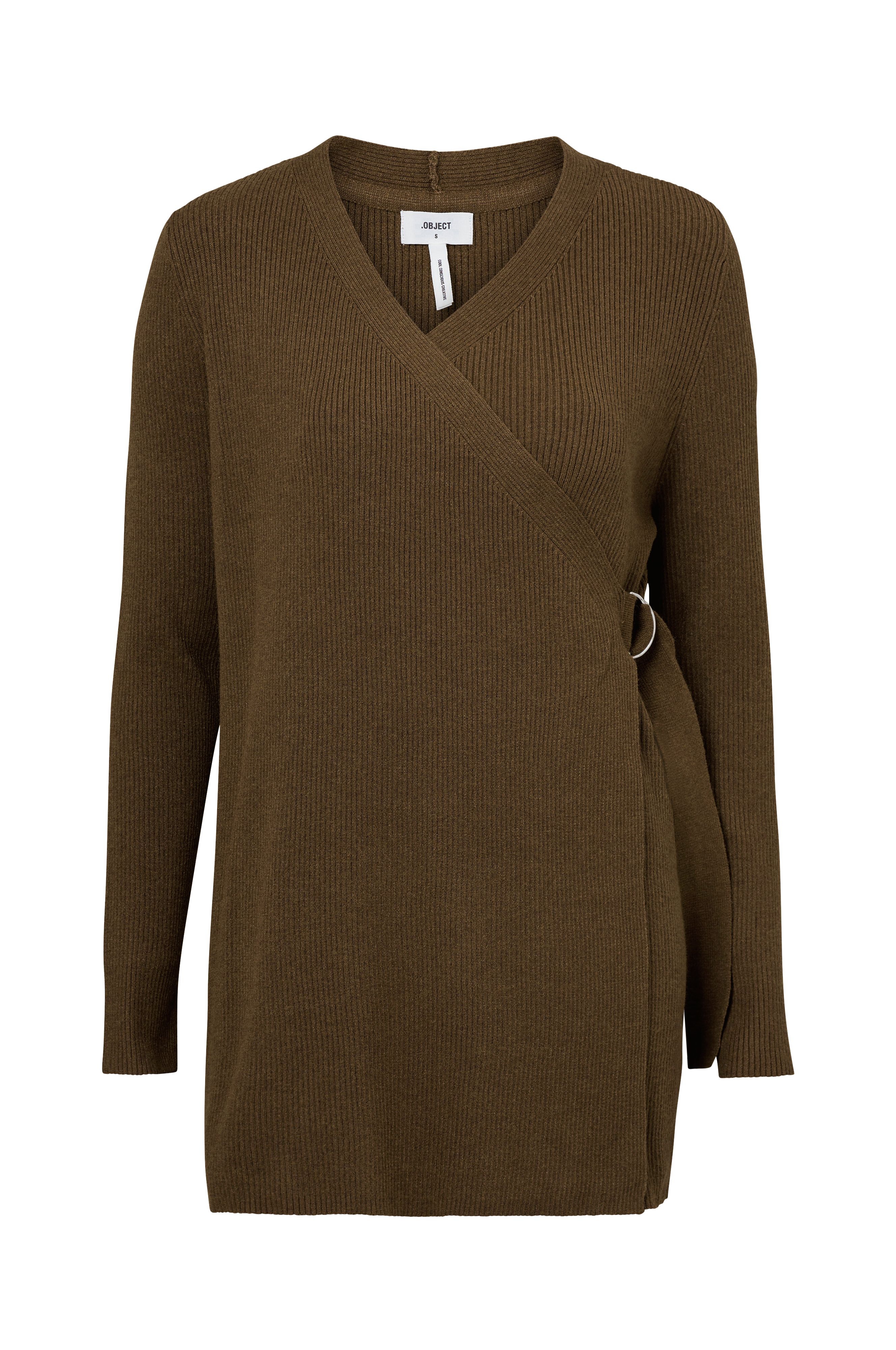 Cardigan objFae Thess L/S Rib Knit Cardigan fra Object i blød, ribstrikket viskoseblanding. Noget længere slå om-model med metalspænde i den ene side.