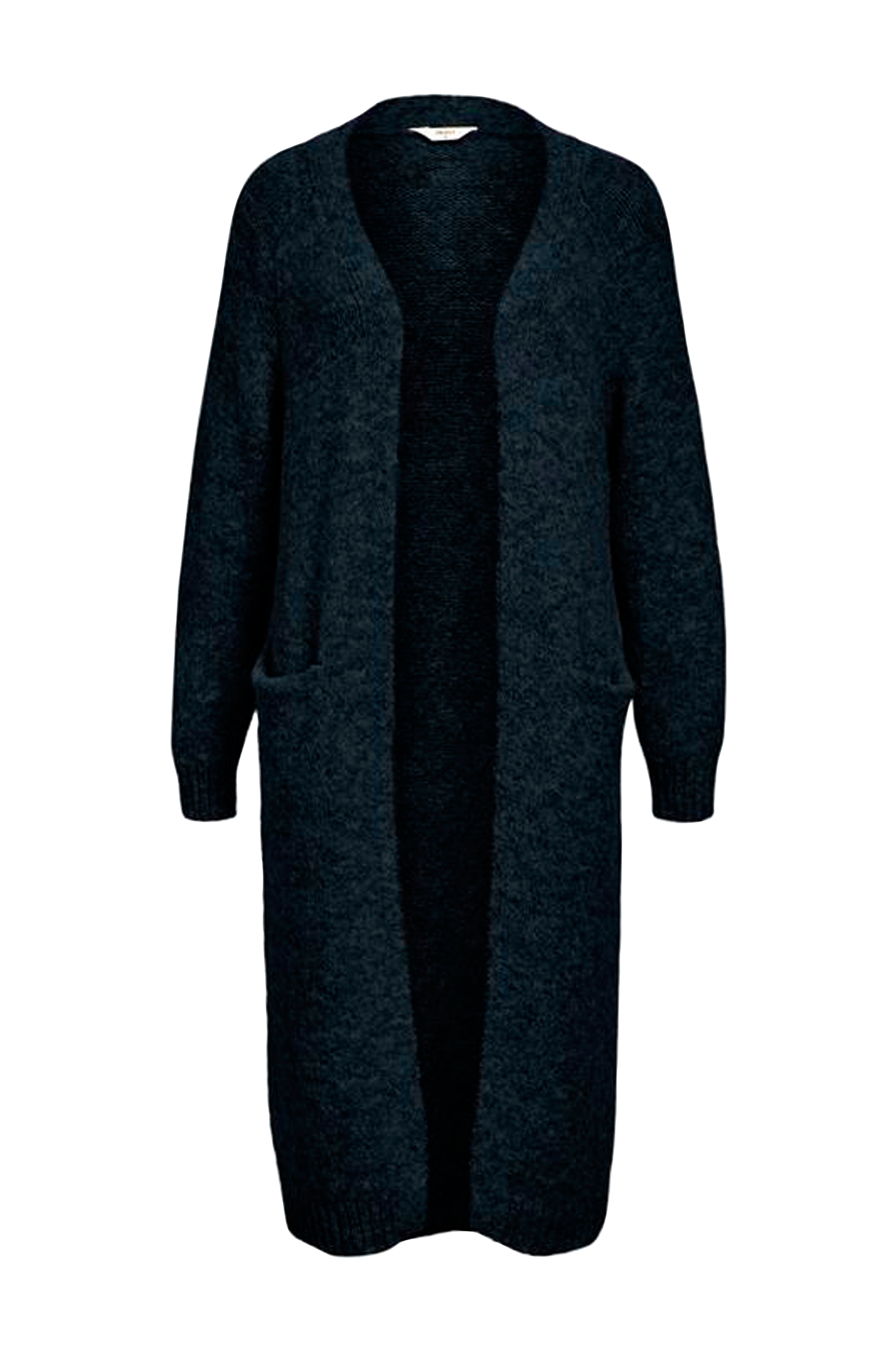 • Lang, mønsterstrikket cardigan i uldmiks• Åben model• Ribstrik ved manchetterne