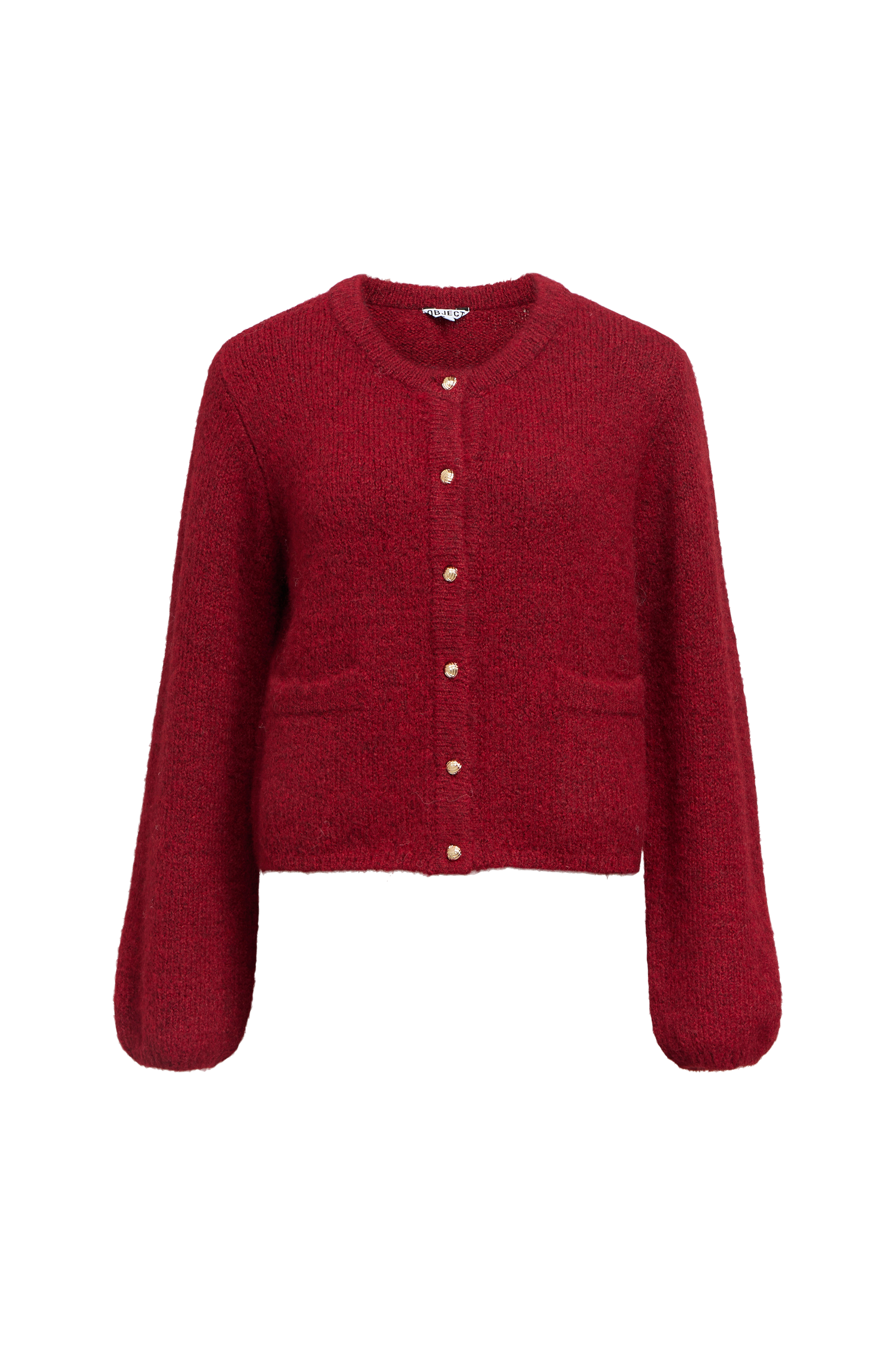 • Fintstrikket, langærmet cardigan med rund, ribbet halsudskæring• Guldfarvede knapper foran• Forlommer