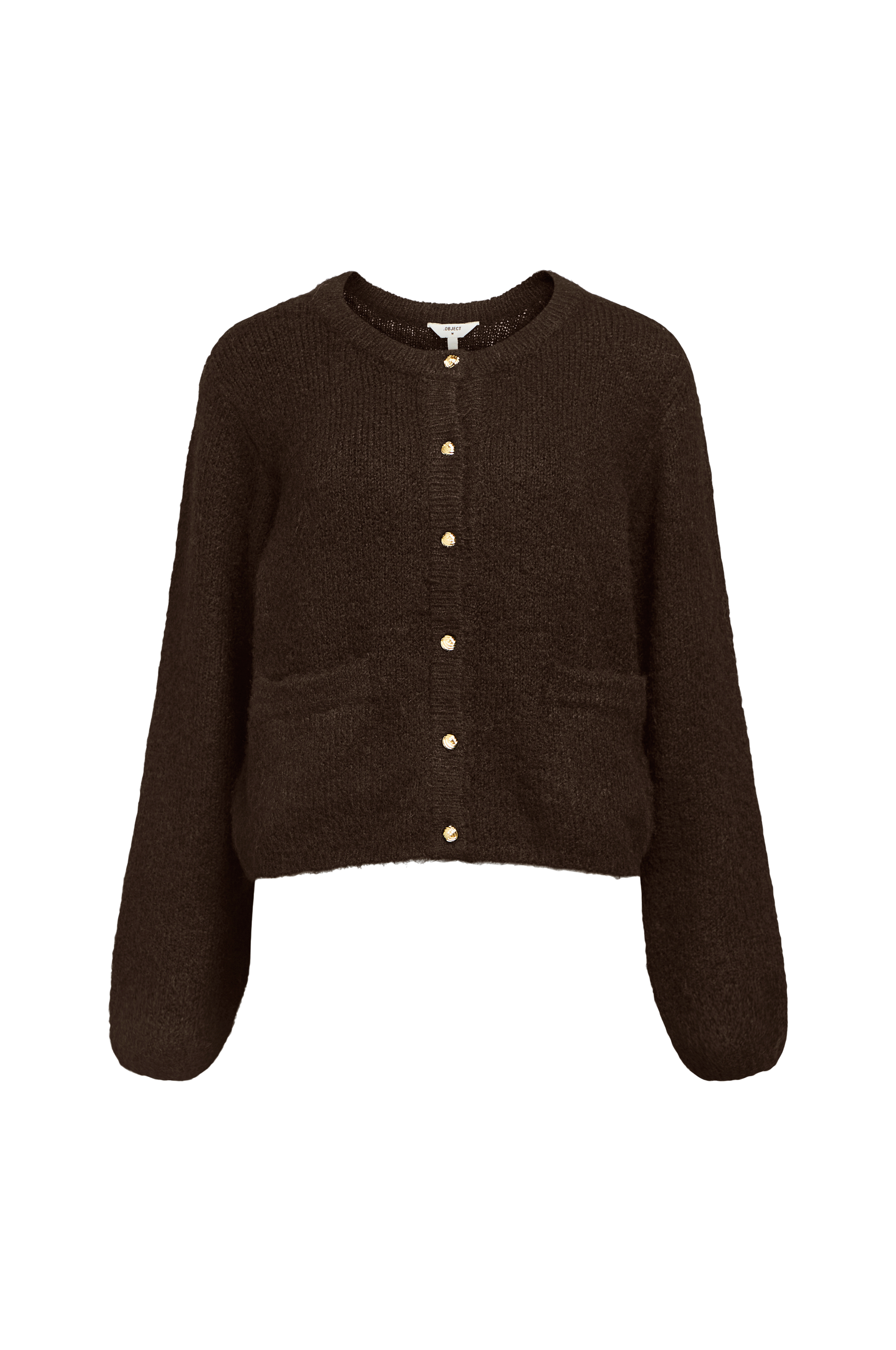 • Fintstrikket, langærmet cardigan med rund, ribbet halsudskæring