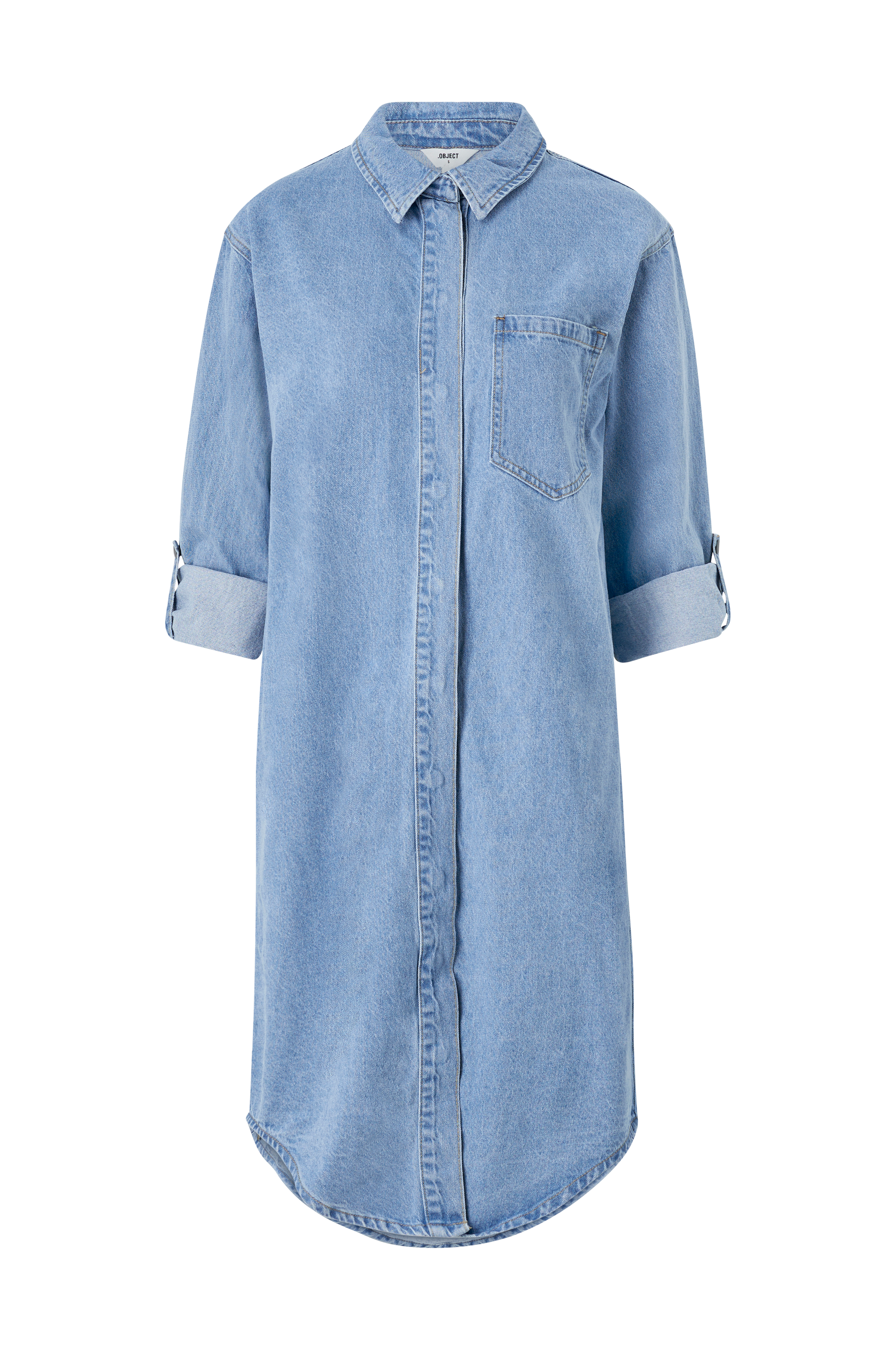 • Lang skjorte i denim • Skjulte trykknapper foran • Langt ærme med oprulningsdetalje • En brystlomme • Afrundet søm • Produktet indeholder økologisk bomuld, som er dyrket uden kemiske sprøjtemidler, kunstgødning og genmodificerede afgrøder (GMO). Dette betyder et sundere arbejdsmiljø for landmænd og bedre jord.