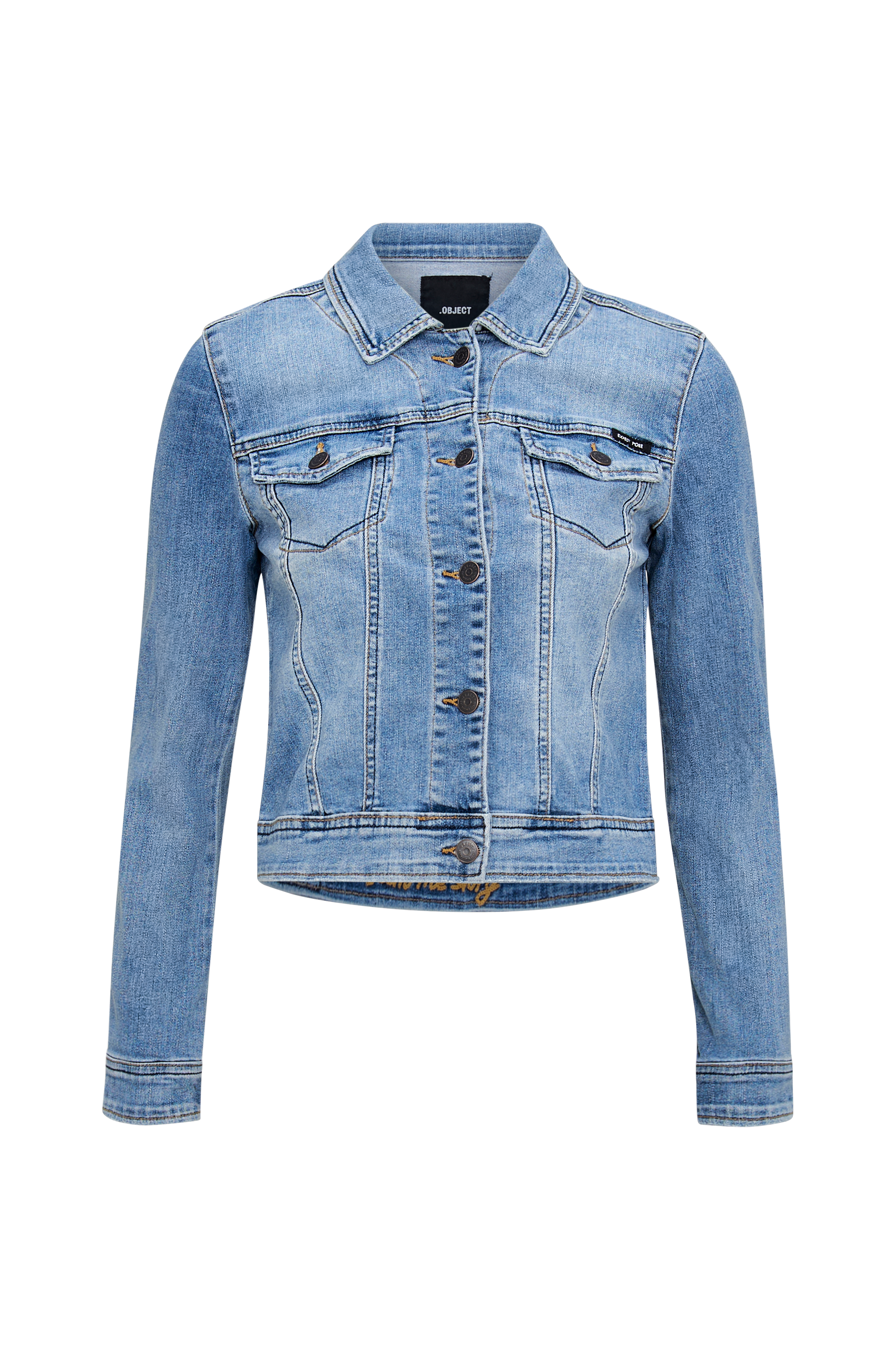 Denimjakke objWin New Denim Jacket fra Object. Let figursyet model i flot stretchdenim med lille krave og metalknapper samt to brystlommer med klap. Længde ca. 51 cm i str. 36.