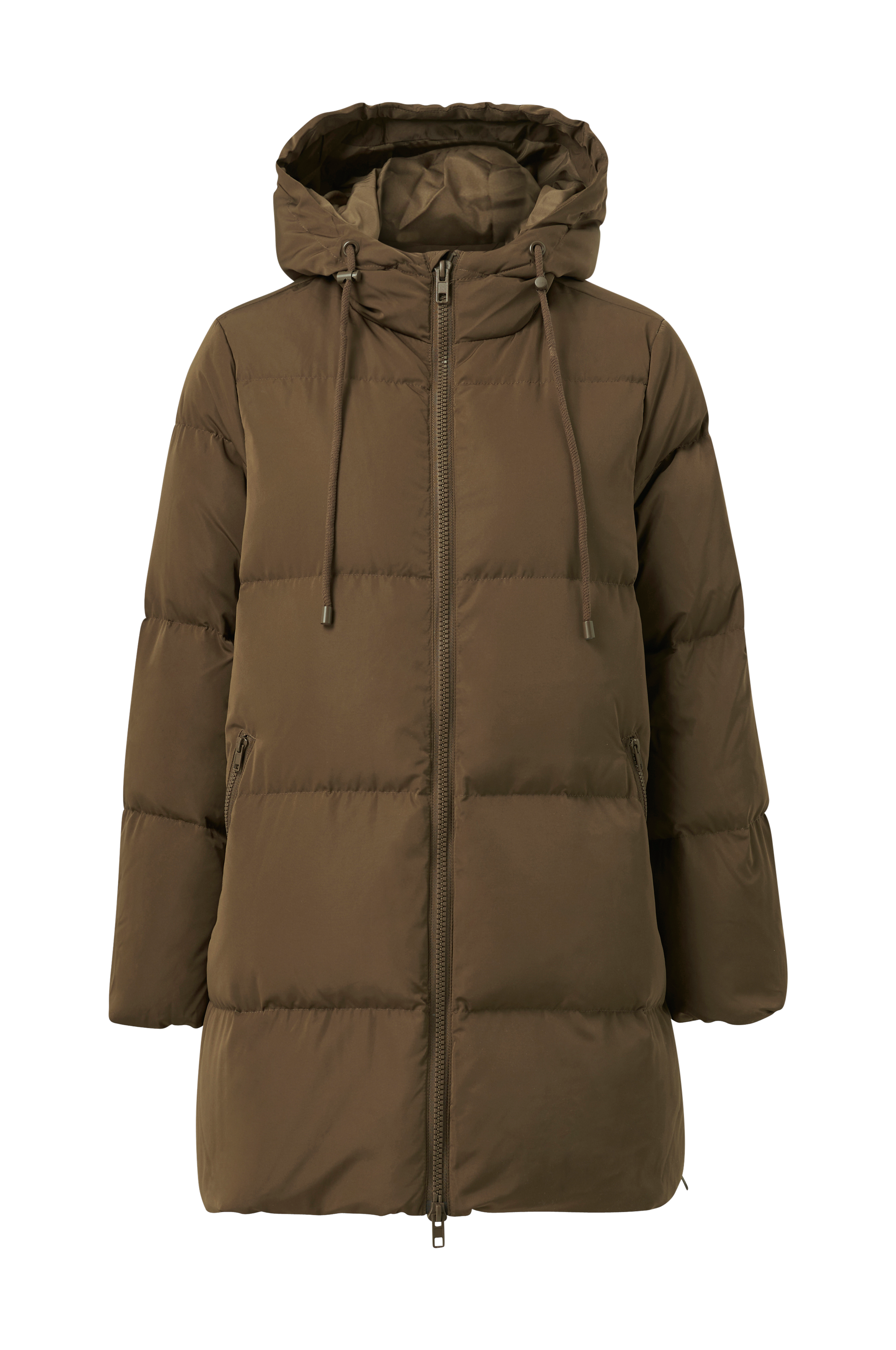• Hætte med træksnørre • To-vejs lynlås • To lynlåslommer • Lynlåse nede i siderne • Ribmanchetter ved manchetterne • Længde: 82 cm i størrelse S • Produktet indeholder genindvundet materiale, som genbruges for at reducere mængden af affald samtidigt med at der ikke anvendes nye ressourcer.