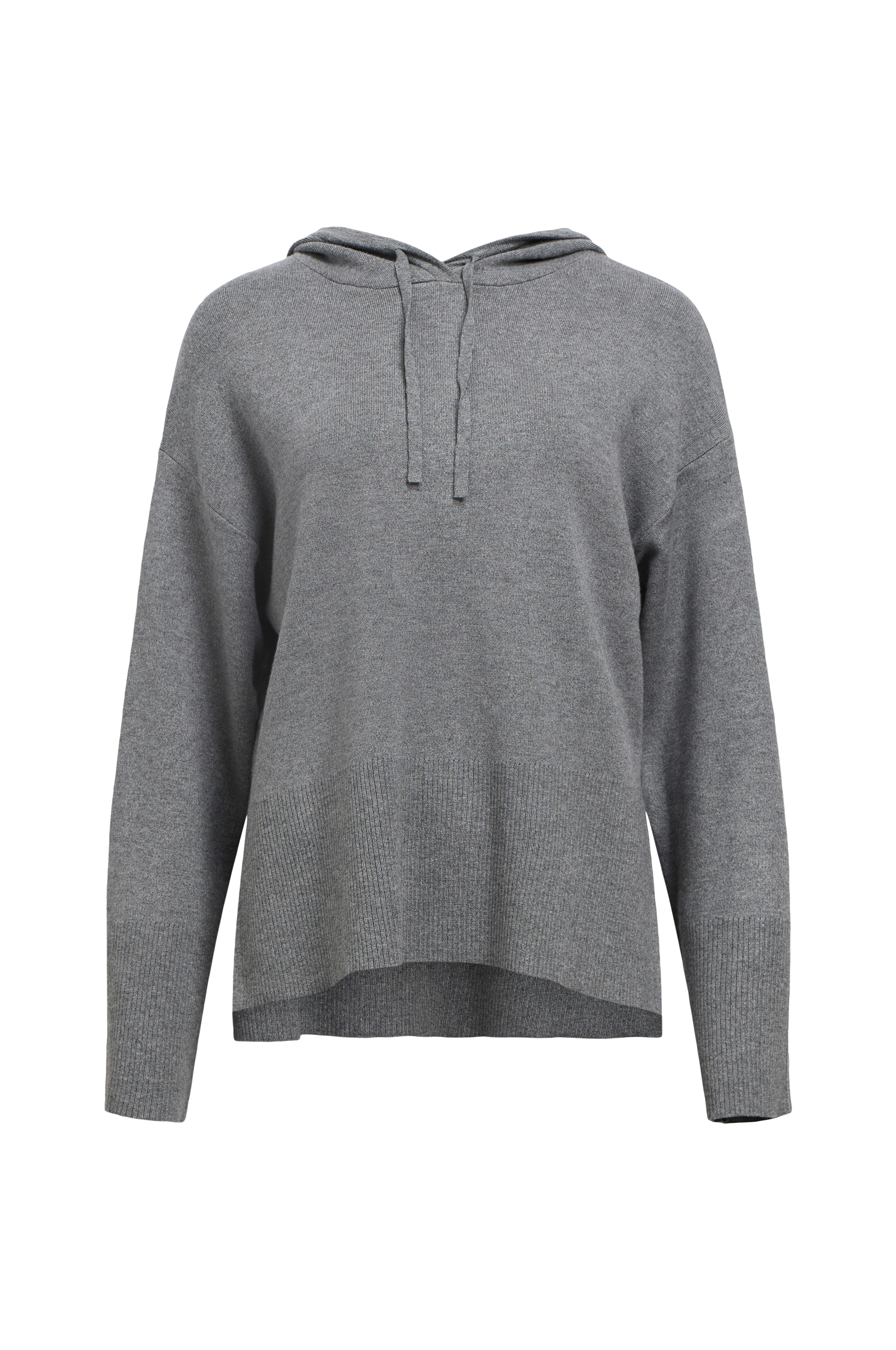 • Fintstrikket hættetrøje med træksnørre og slå om-detalje ved hætten• Lange arme med bred ribstrik ved manchetterne og nedsænket skulder• Bred ribstrik ved nederste kant• Slids i siderne