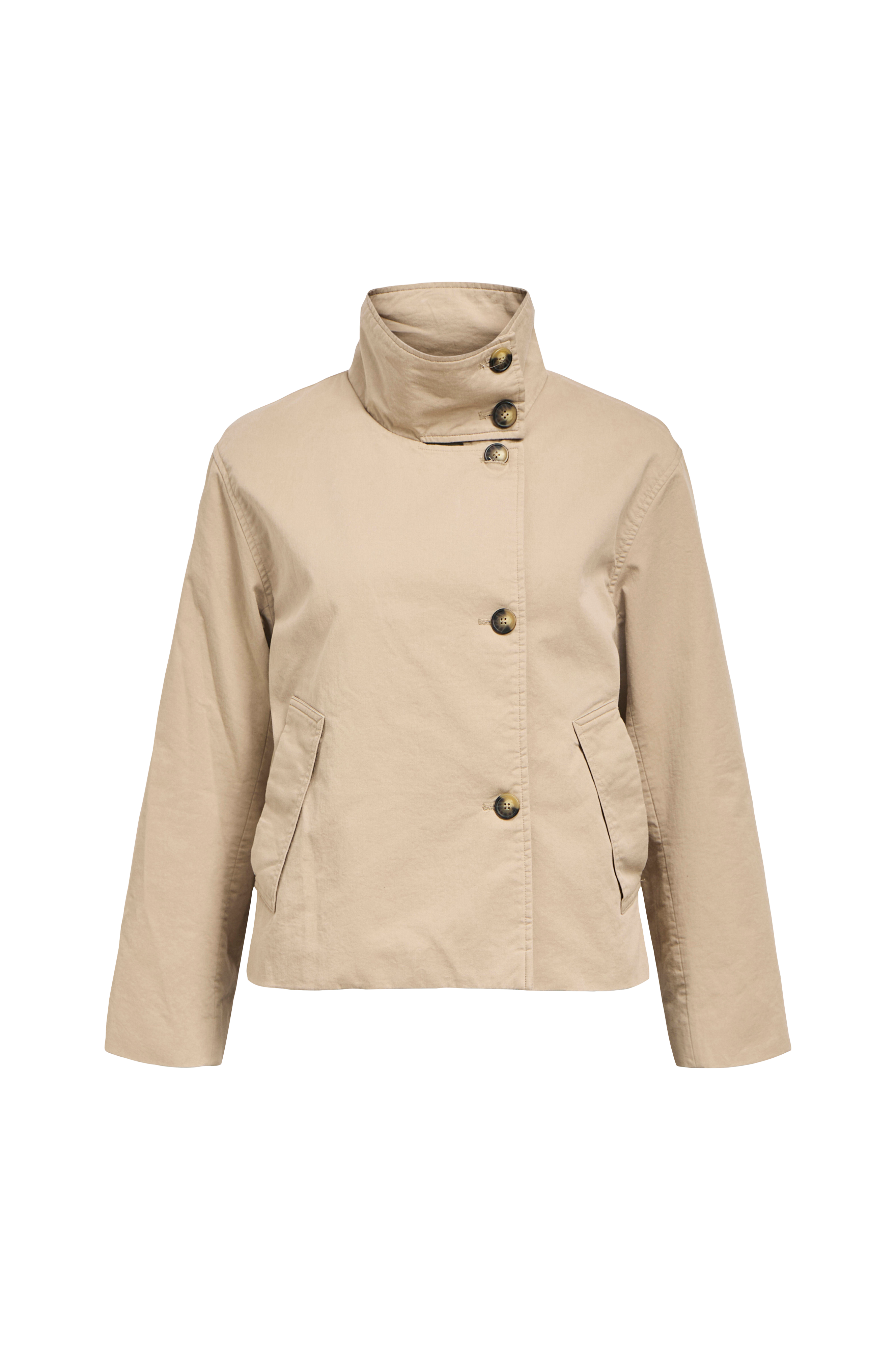 • Kort model• Høj krave med knaplukning• To lommer• Vævet, glat for• Længde: 59 cm i størrelse 36