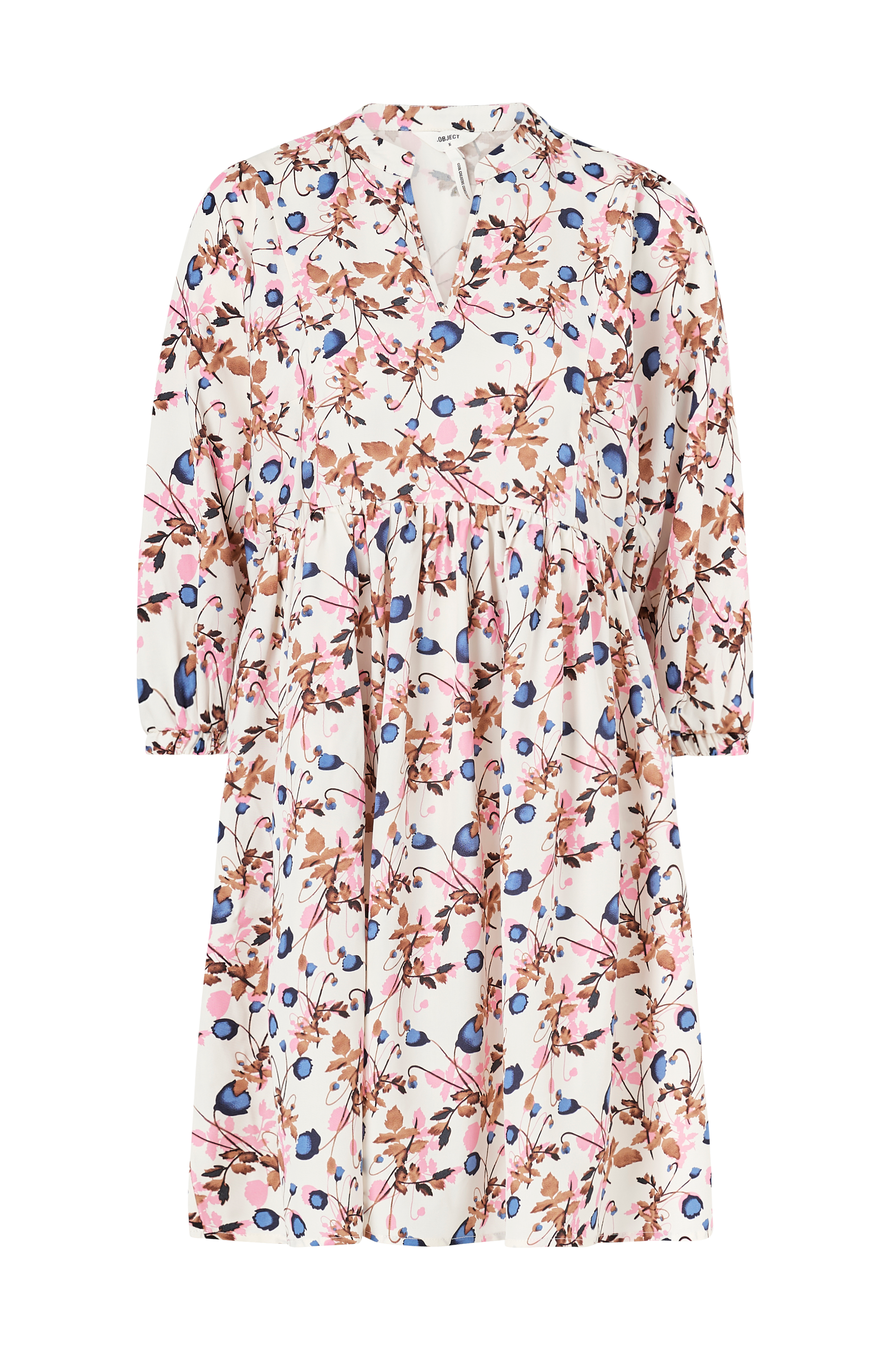 Kjole objArina 3/4 Dress 108 fra Object med V-udskæring og vide, 3/4-lange ærmer med elastisk ærmekant. Rynket talje og A-formet nederdel. Længde ca. 96 cm i str. 36.