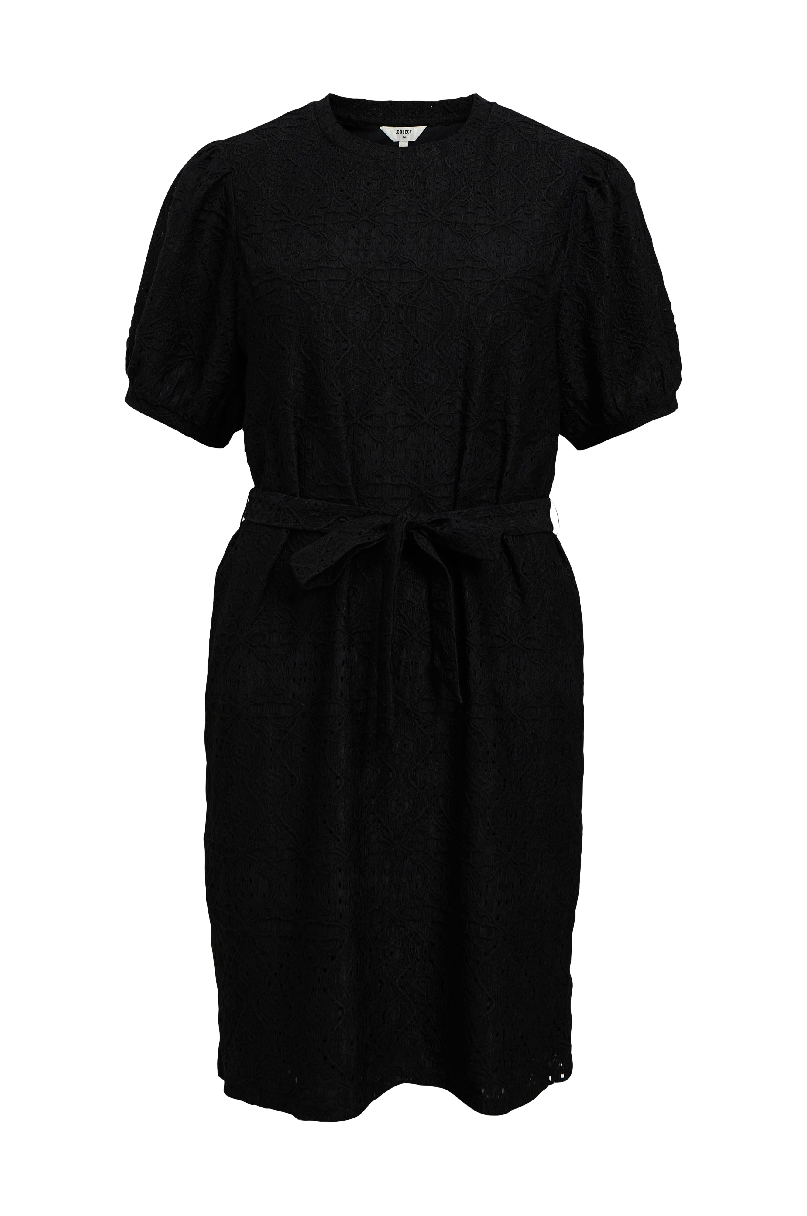 • Broderet hulmønster• Korte ballonærmer• Bindebælte• Trikotfor• Længde: 91 cm i størrelse S