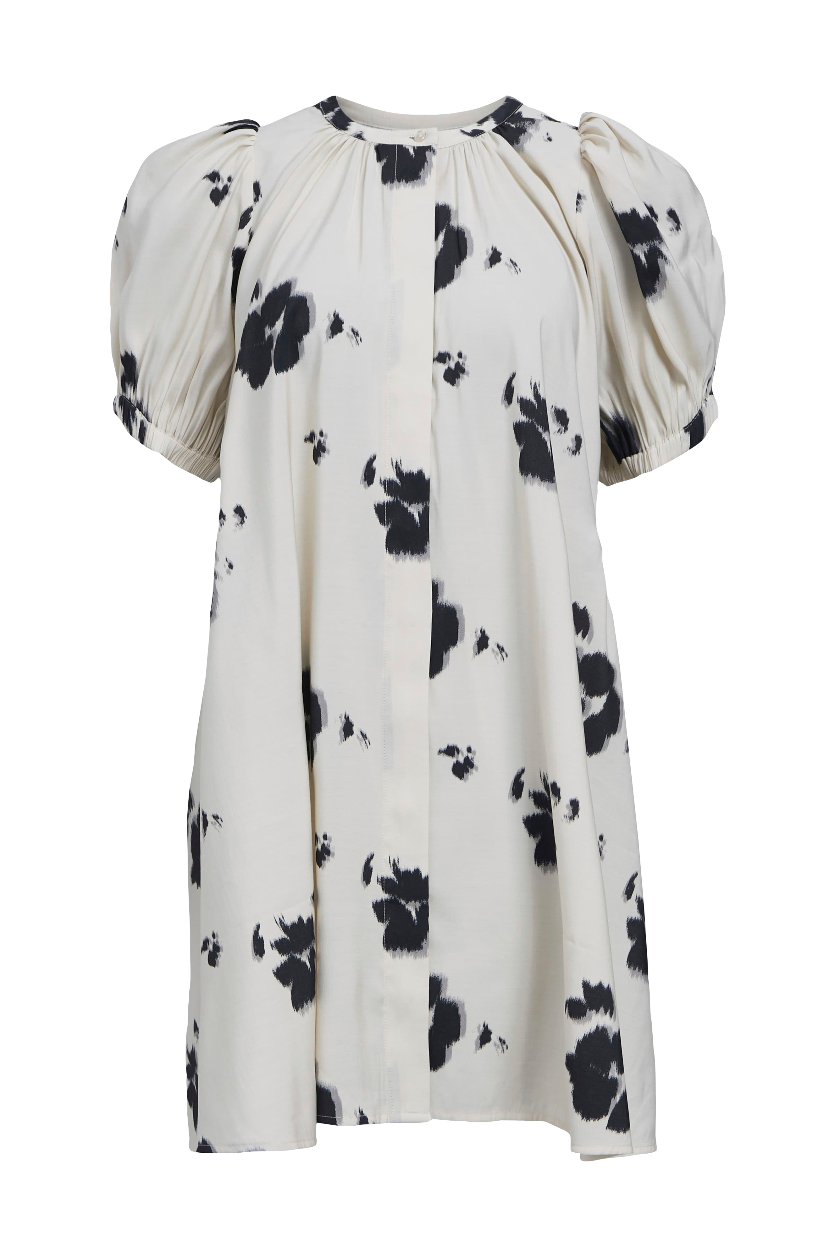 • Kjole i viskoseblanding med printet mønster• Rund halsudskæring• Skjult knapstolpe hele vejen frem• Korte ballonærmer med elastik ved manchetterne• Løs pasform• Justérbart bindebånd bagpå ved taljen• Længde: 90 cm i størrelse 36