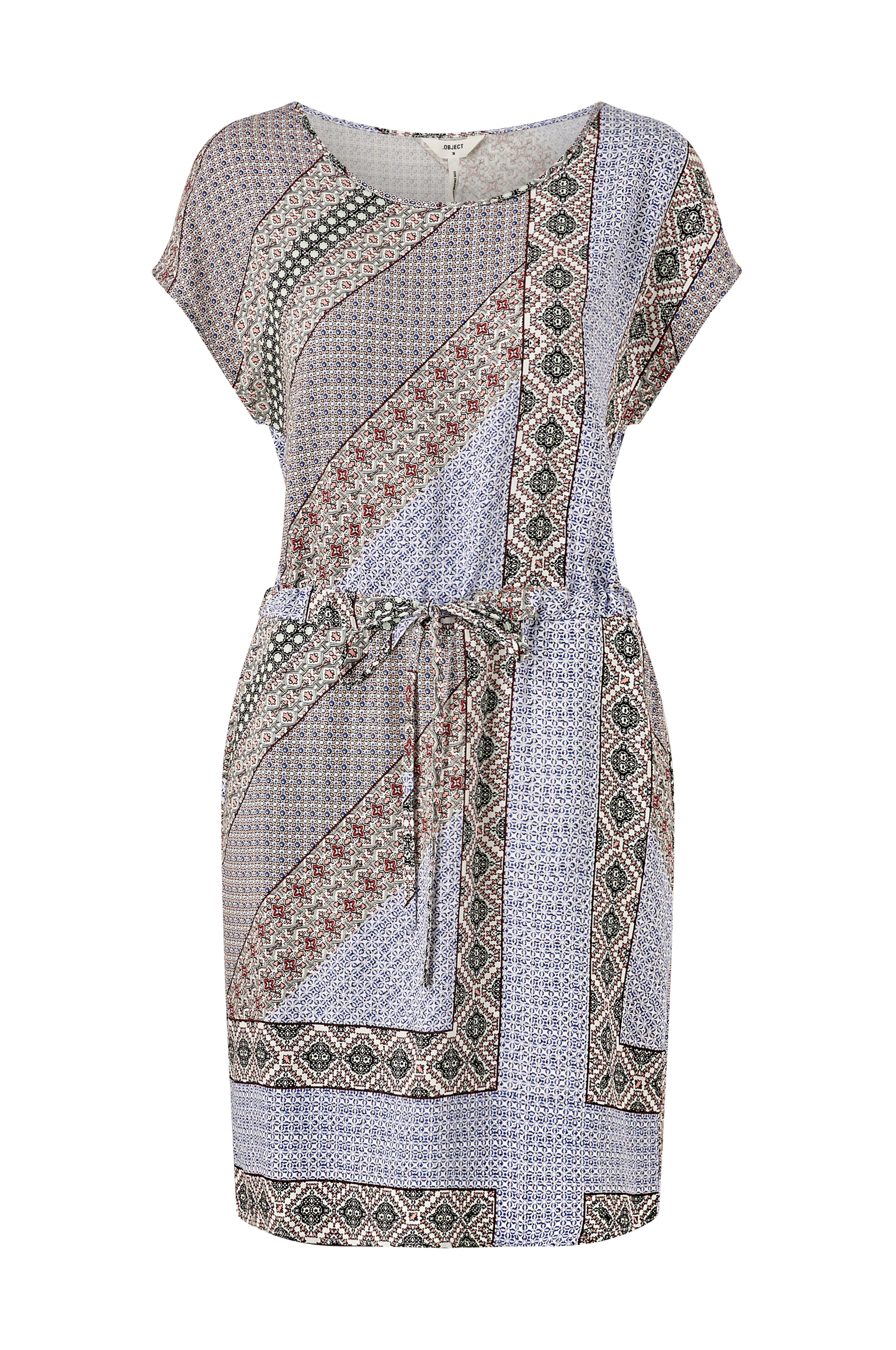 Kjole objLudmilla S/S Dallas Dress 108 fra Object med løbegang i taljen, lommer i siderne og korte ærmer. Længde ca. 100 cm i str. 36.