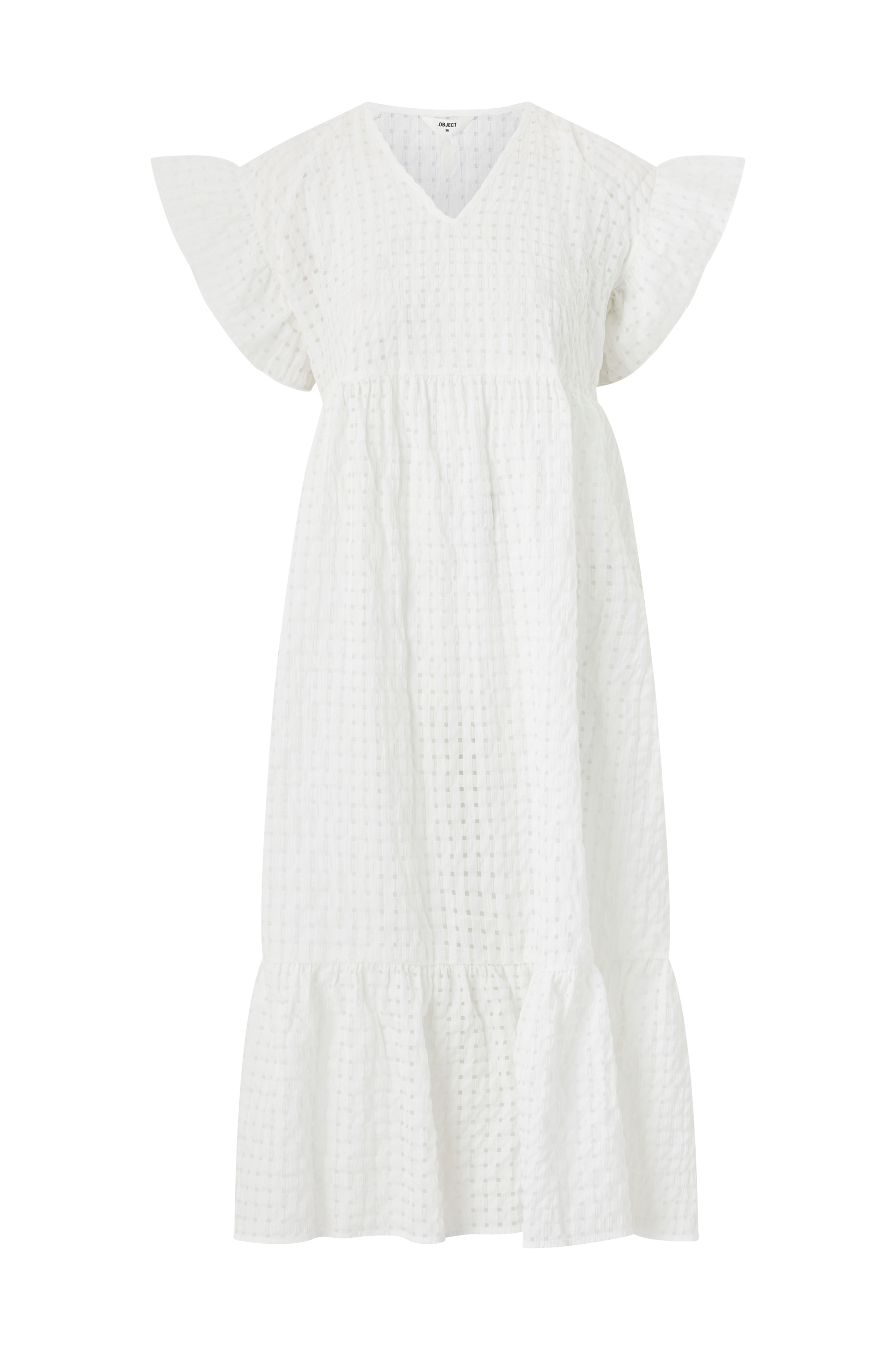 • Lang model med svaj• V-formet halsudskæring• Kort raglanærme med volant• Rynket talje• Bred volant ved nederste kant• Udtagelig trikotkjole med tynde, justérbare skulderstropper• Længde: 124 cm i størrelse 36