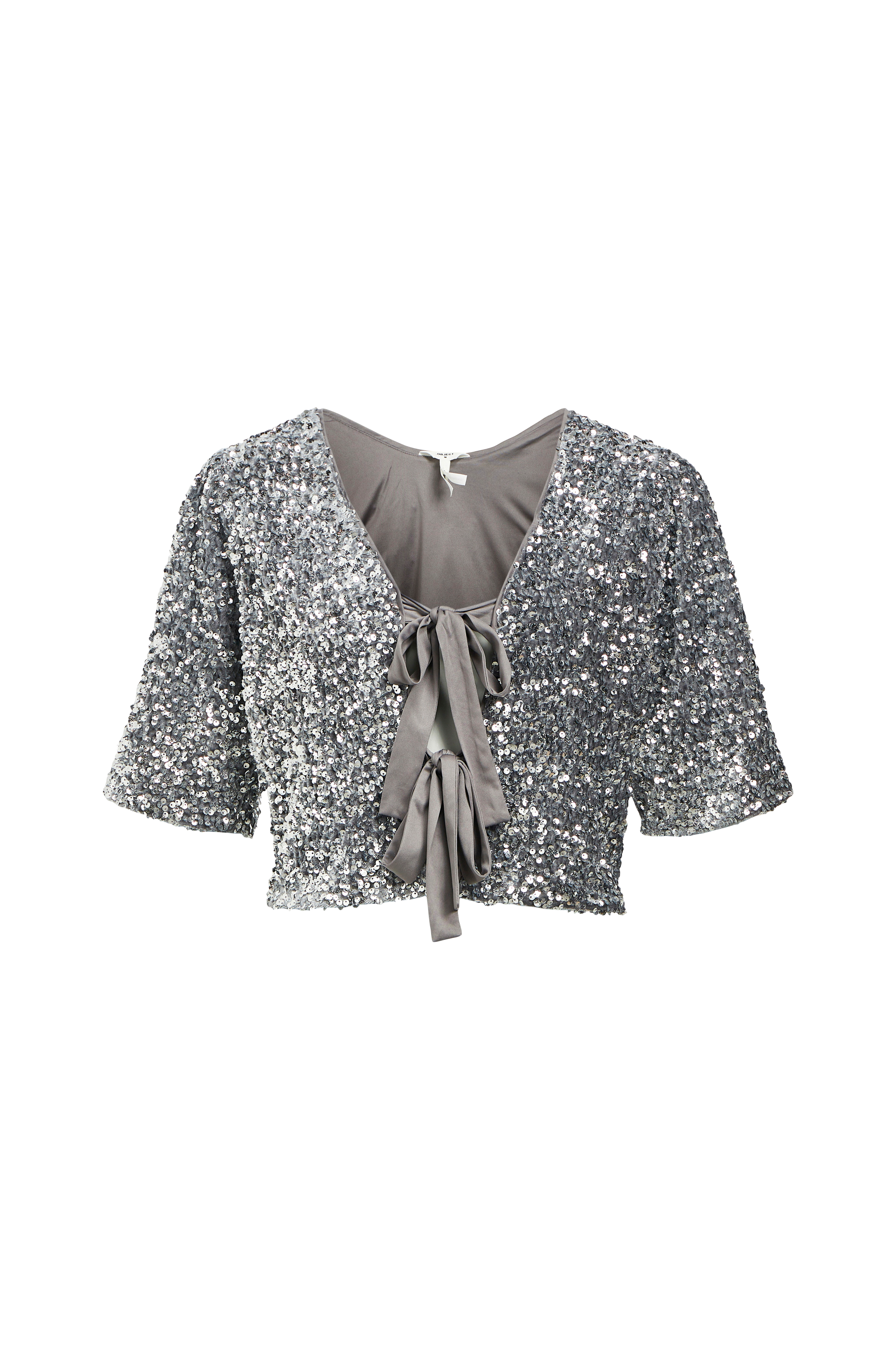 • Foret, croppet paillet top• Kort ærme• Lukning med to bindebånd• Elastisk for