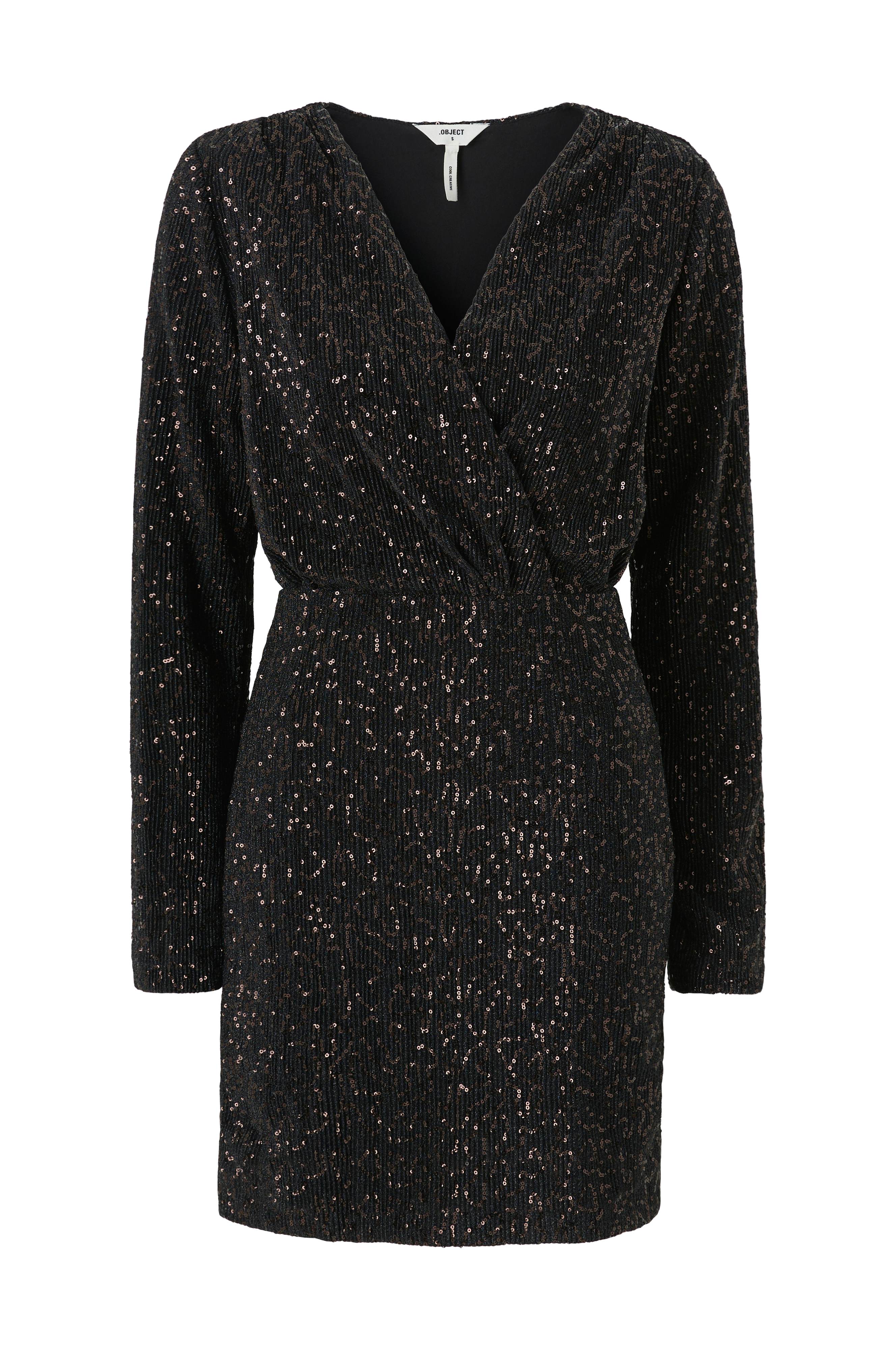 • Festkjole med pailleter• Figursyet pasform• V-udskæring med slå-om• Skulderpuder• Længde: 90 cm i størrelse S