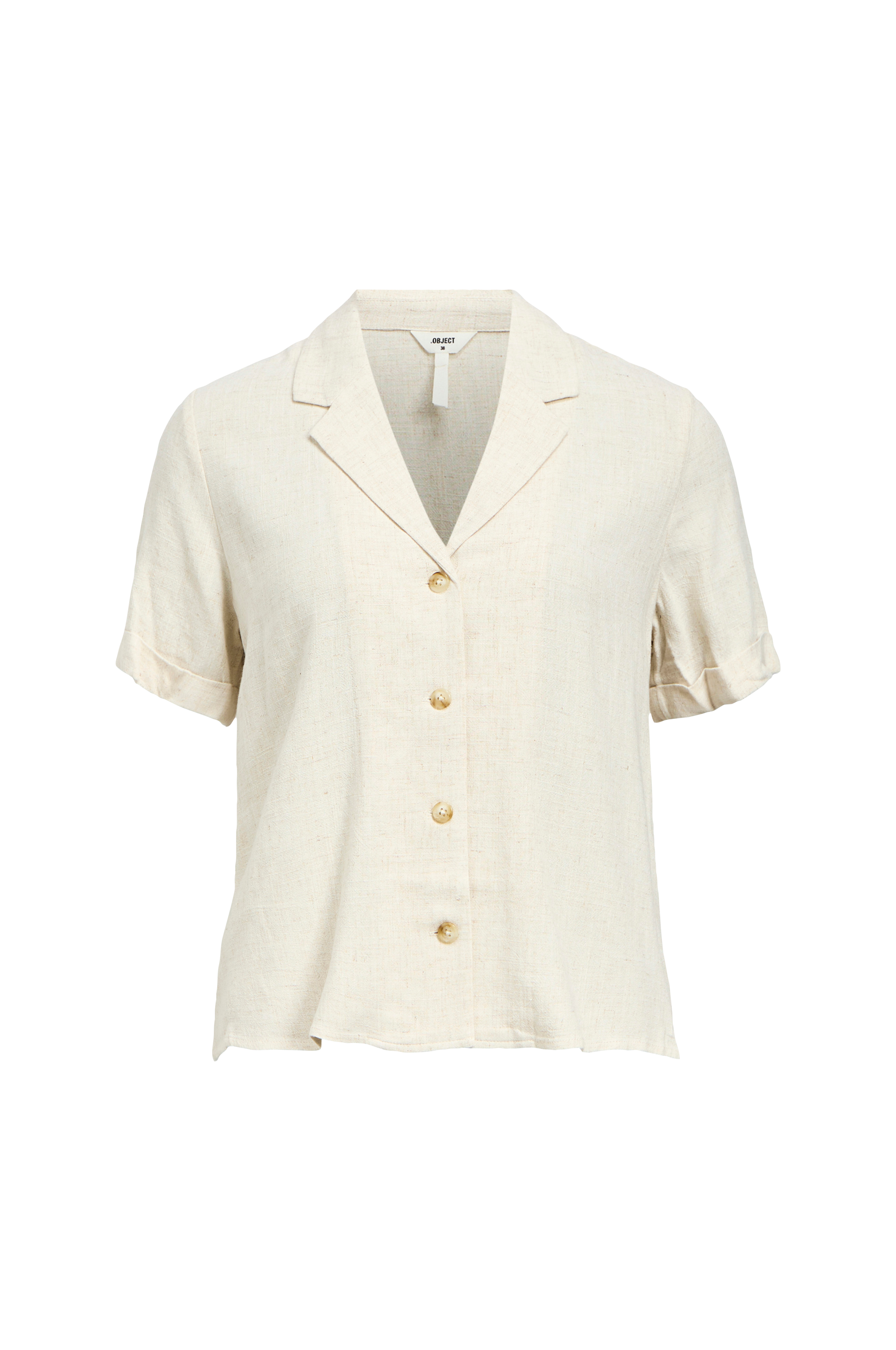 • Skjorte med krave og revers• V-udskæring• Korte ærmer med syede ærmeafslutninger