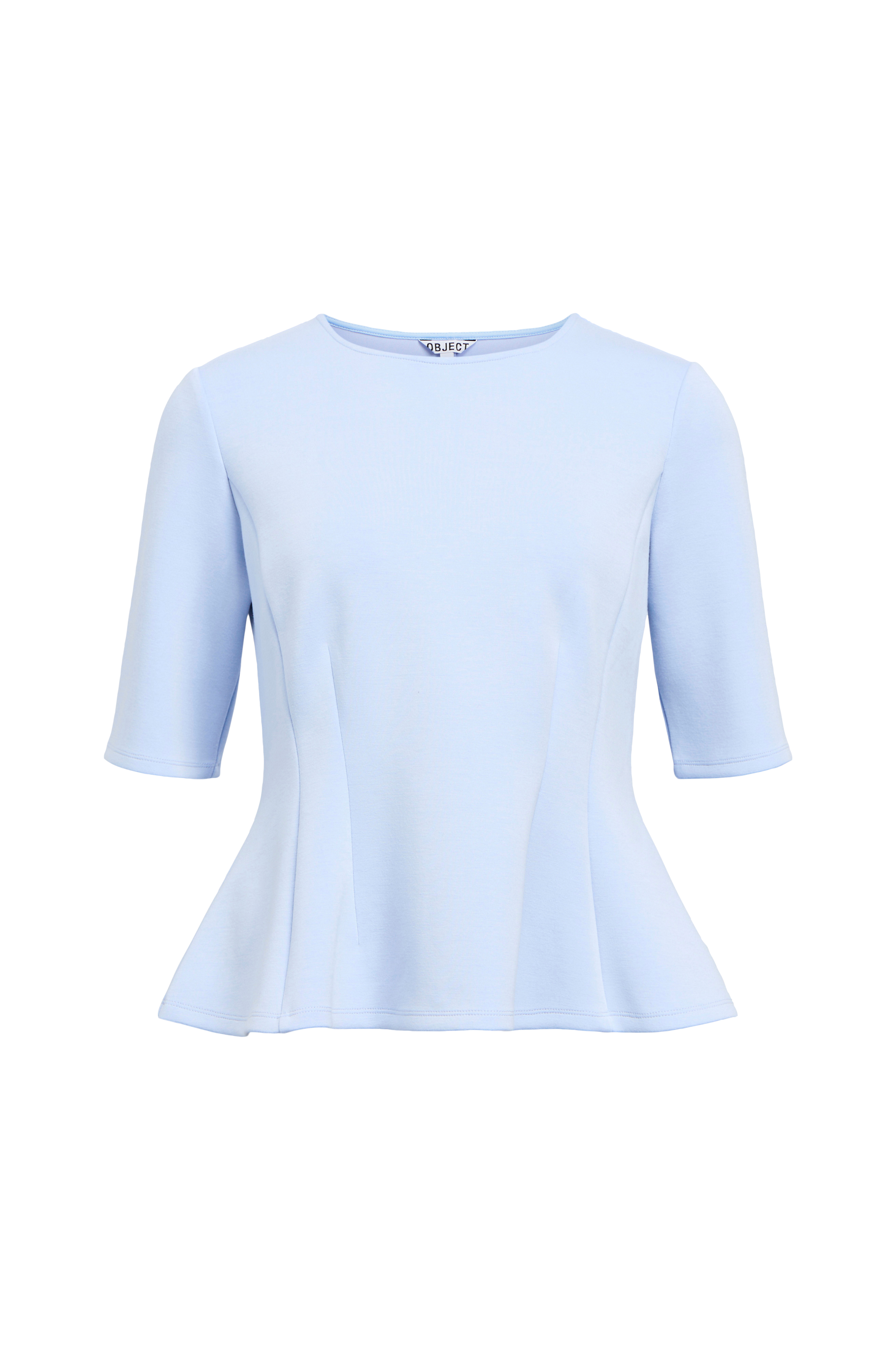 • Elastisk top med peplumdesign• Rund halsudskæring• Halvlange ærmer• Indsnit ved taljen