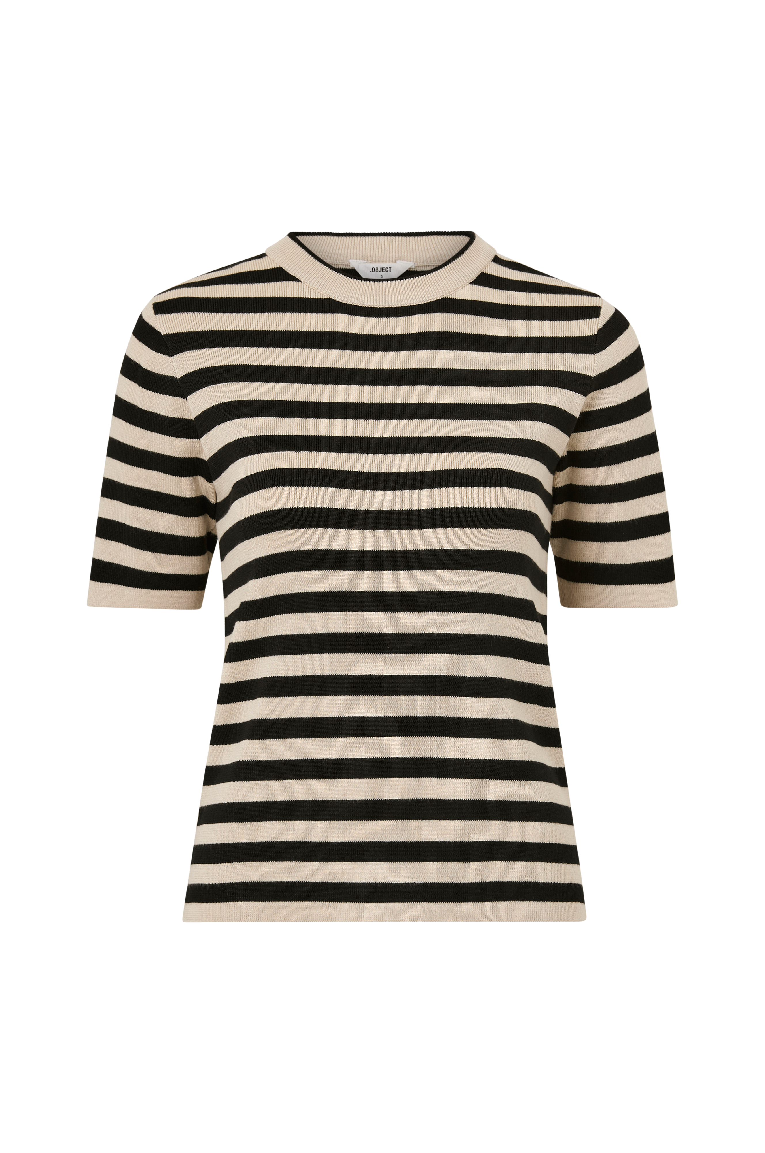• Model med strikkede striber• Kort ærme• Rund hals med ribkant