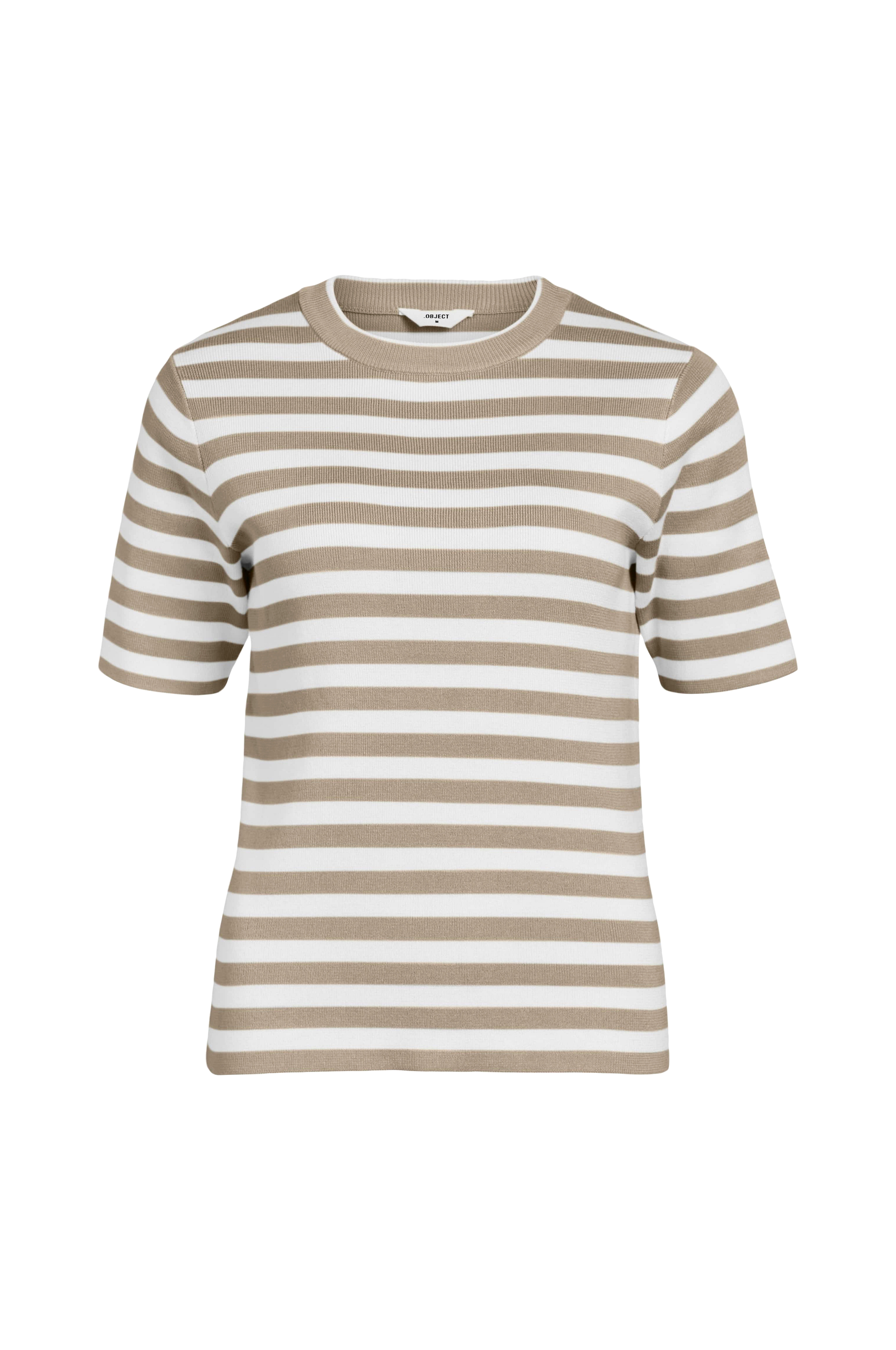 • Model med strikkede striber• Kort ærme• Rund hals med ribkant