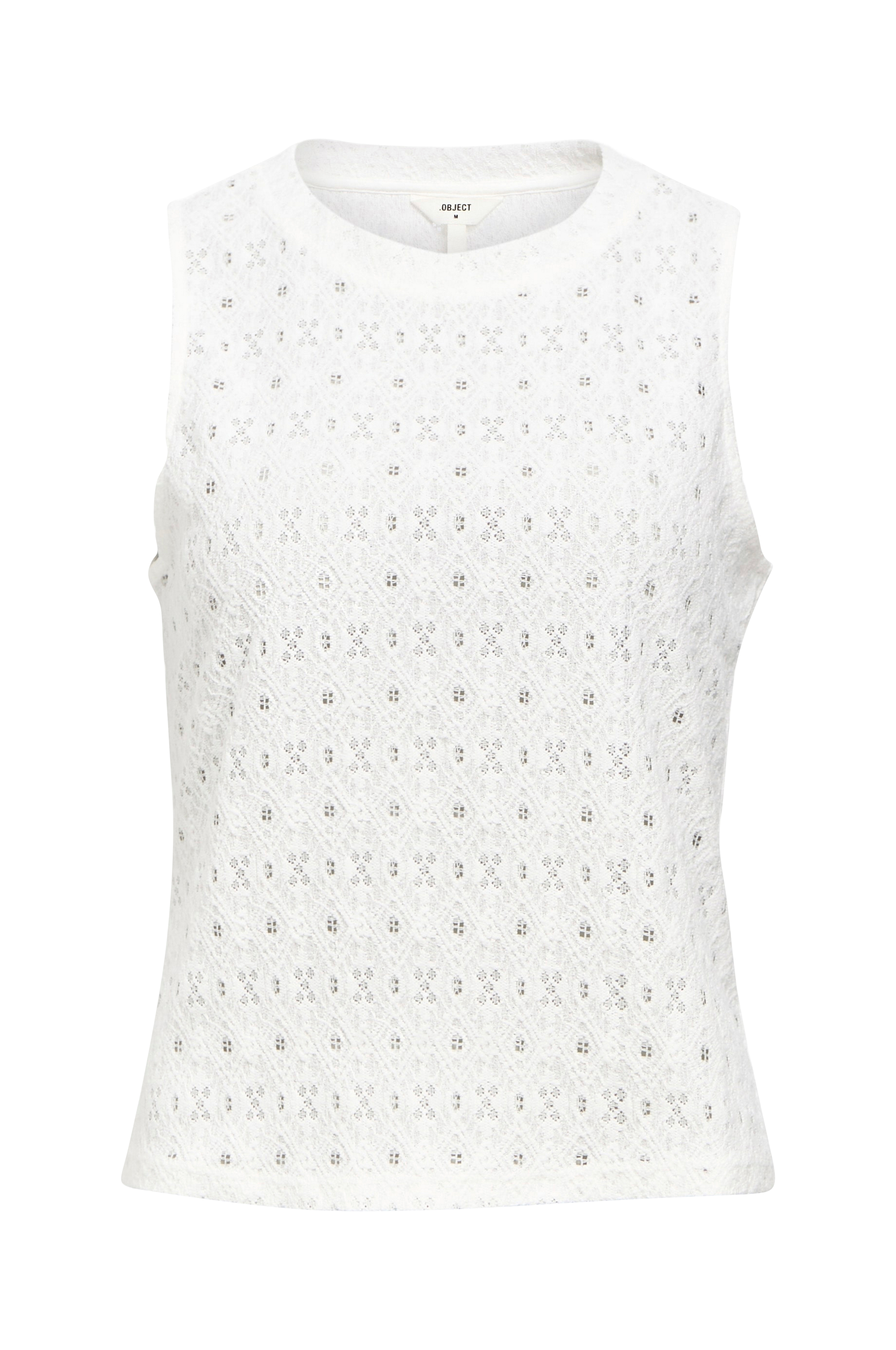 • Ærmeløs, semitransparent blondetop• Rund halsudskæring