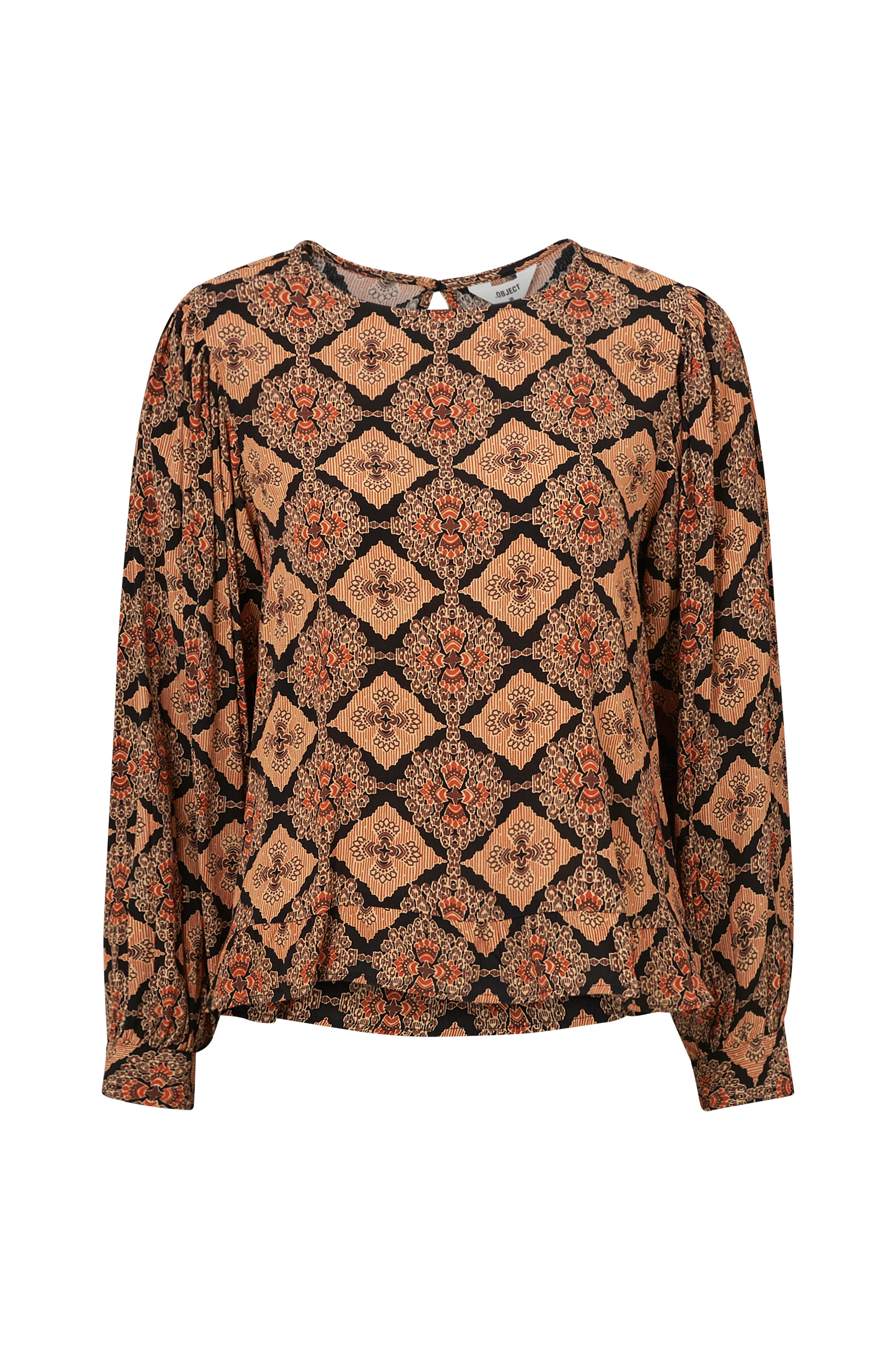 Top objLisa L/S Top fra Object. Lige model i vævet kvalitet med lille, påsyet flæse i kanten forneden. Rund hals med smal søm og slids med knap i nakken. Langt, vidt ærme med rynkning ved skulderen og manchet i ærmekant.