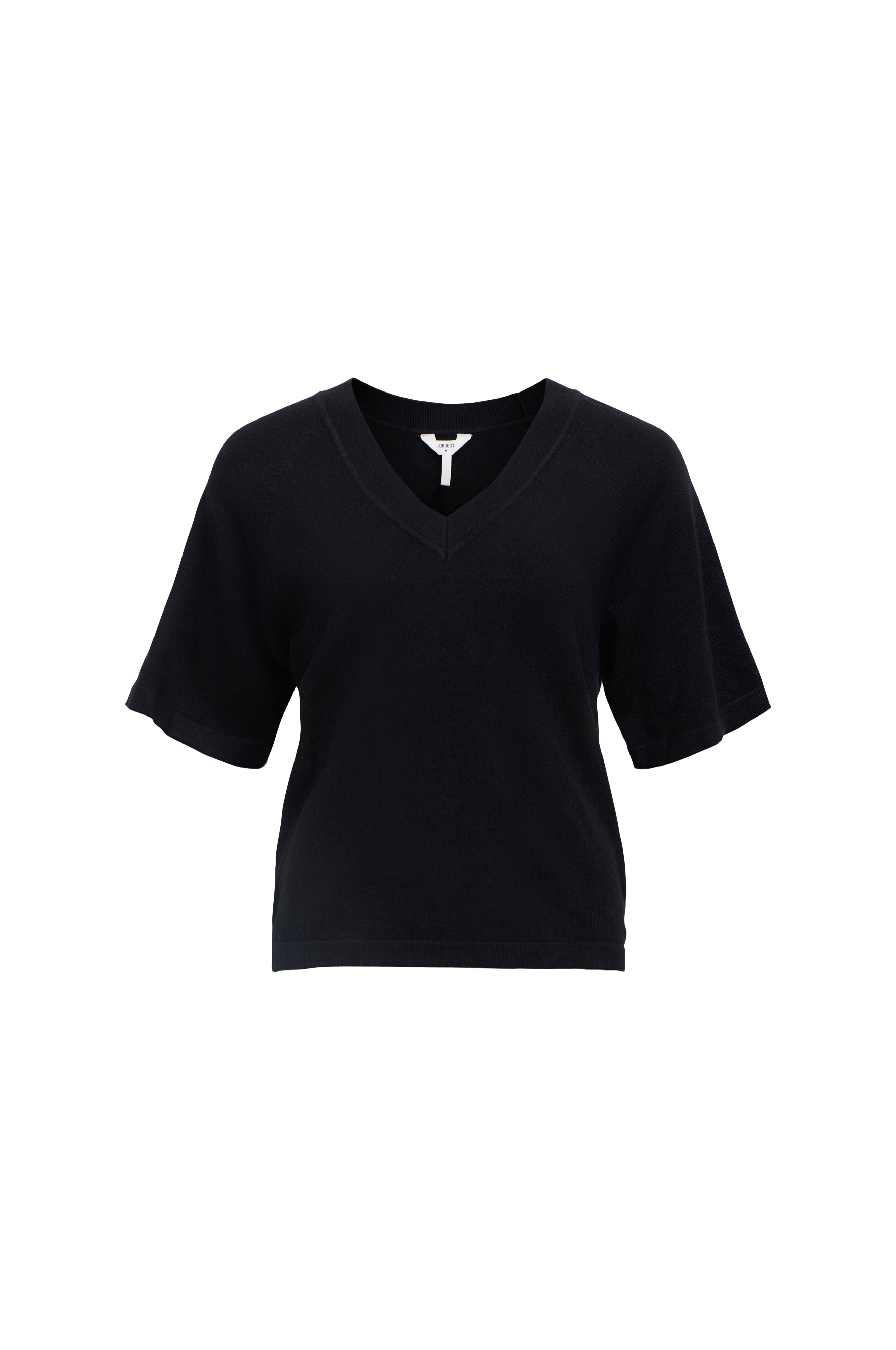 • Fintstrikket top i blød viskoseblanding• Korte ærmer med nedsænkede skuldre og ribstrik ved manchetterne• V-formet halsudskæring med ribbet kant• Ribstrik nederst