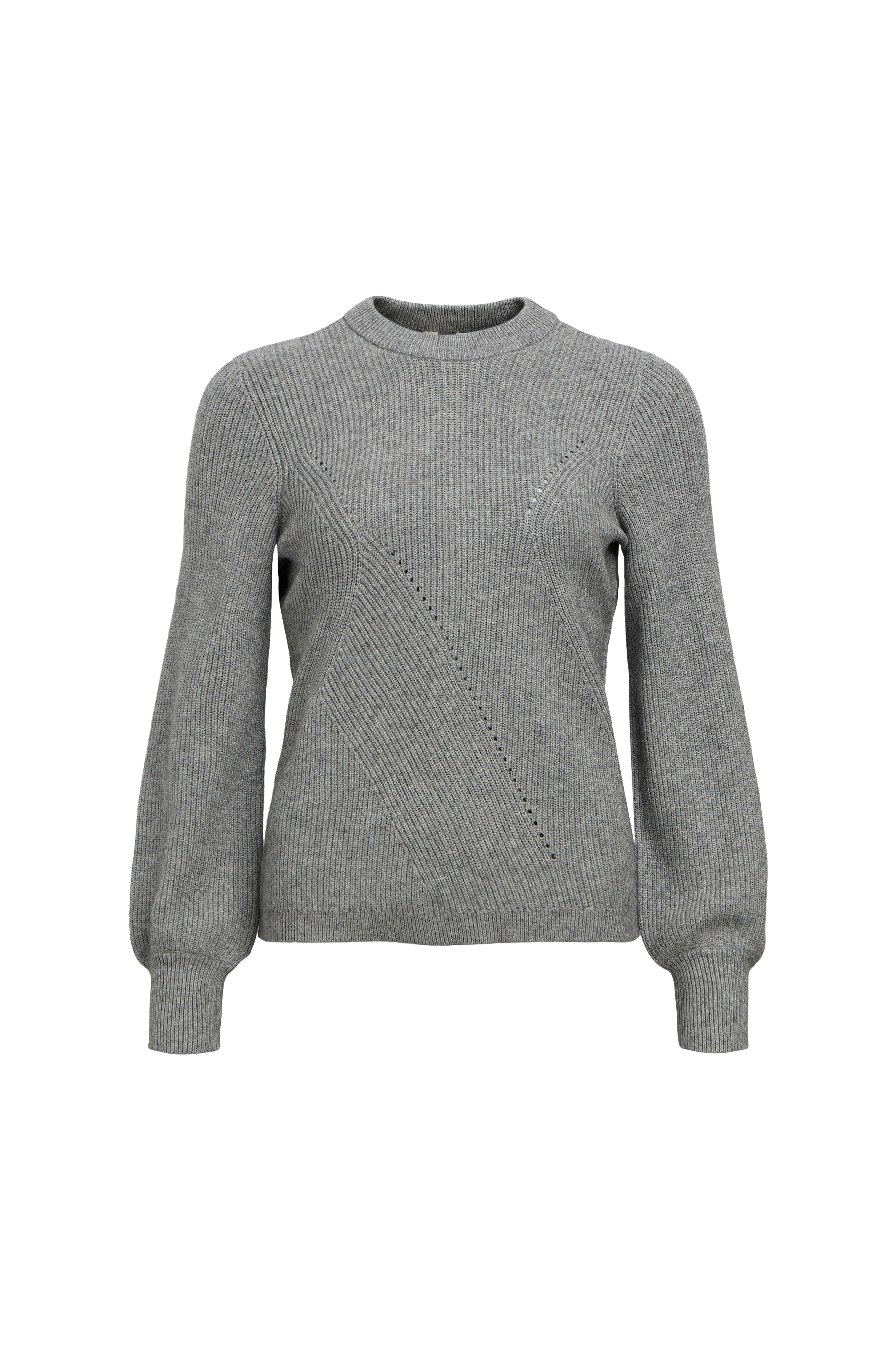 • Strukturstrikket model• Halsudskæring med ribkant• Ribstrik ved manchetterne og ved nederste kant