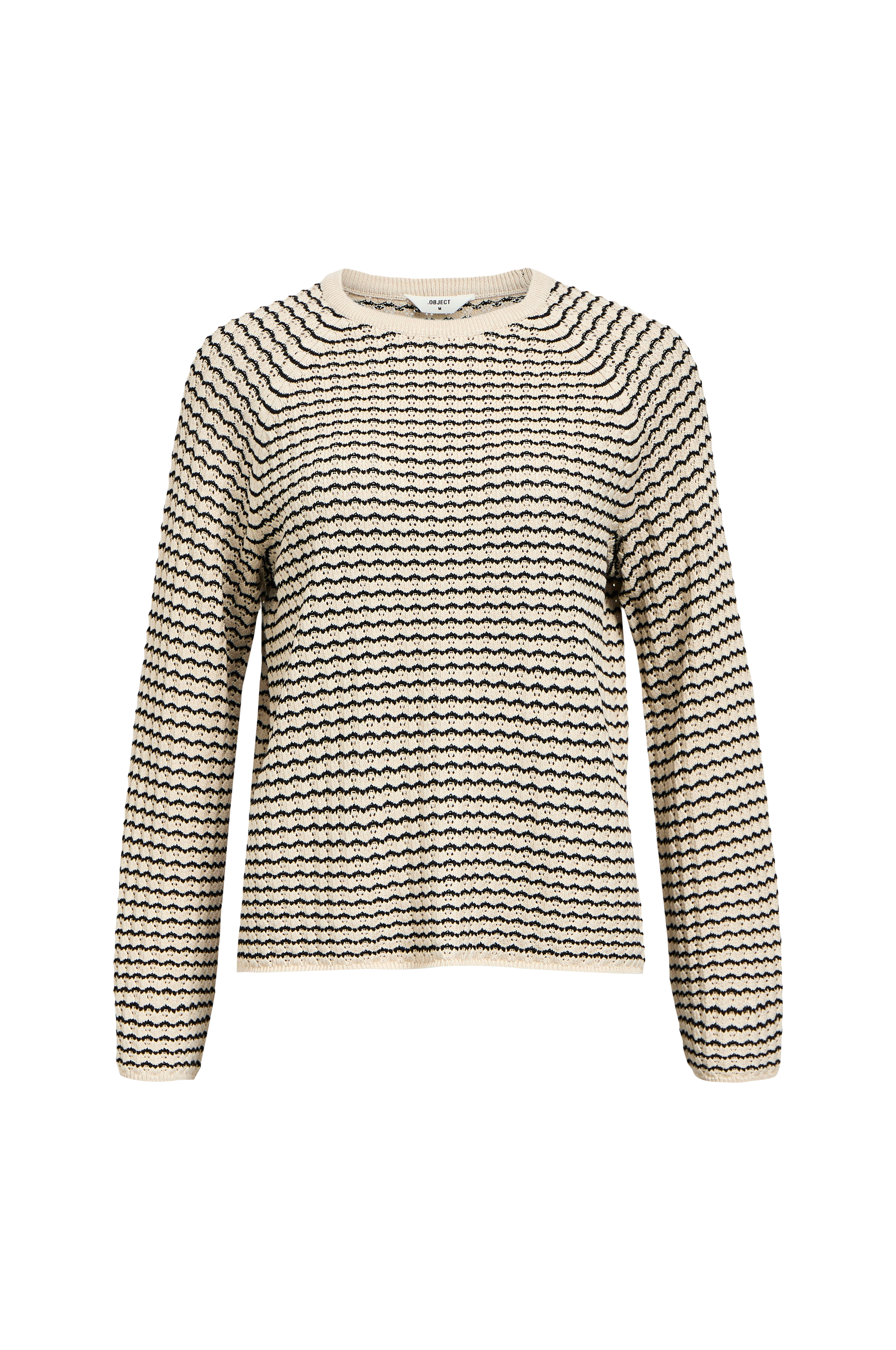 • Strukturstrikket trøje• Rund, ribbet halsudskæring• Raglanærmer• Ribstrikkede kanter ved manchetterne og nederst