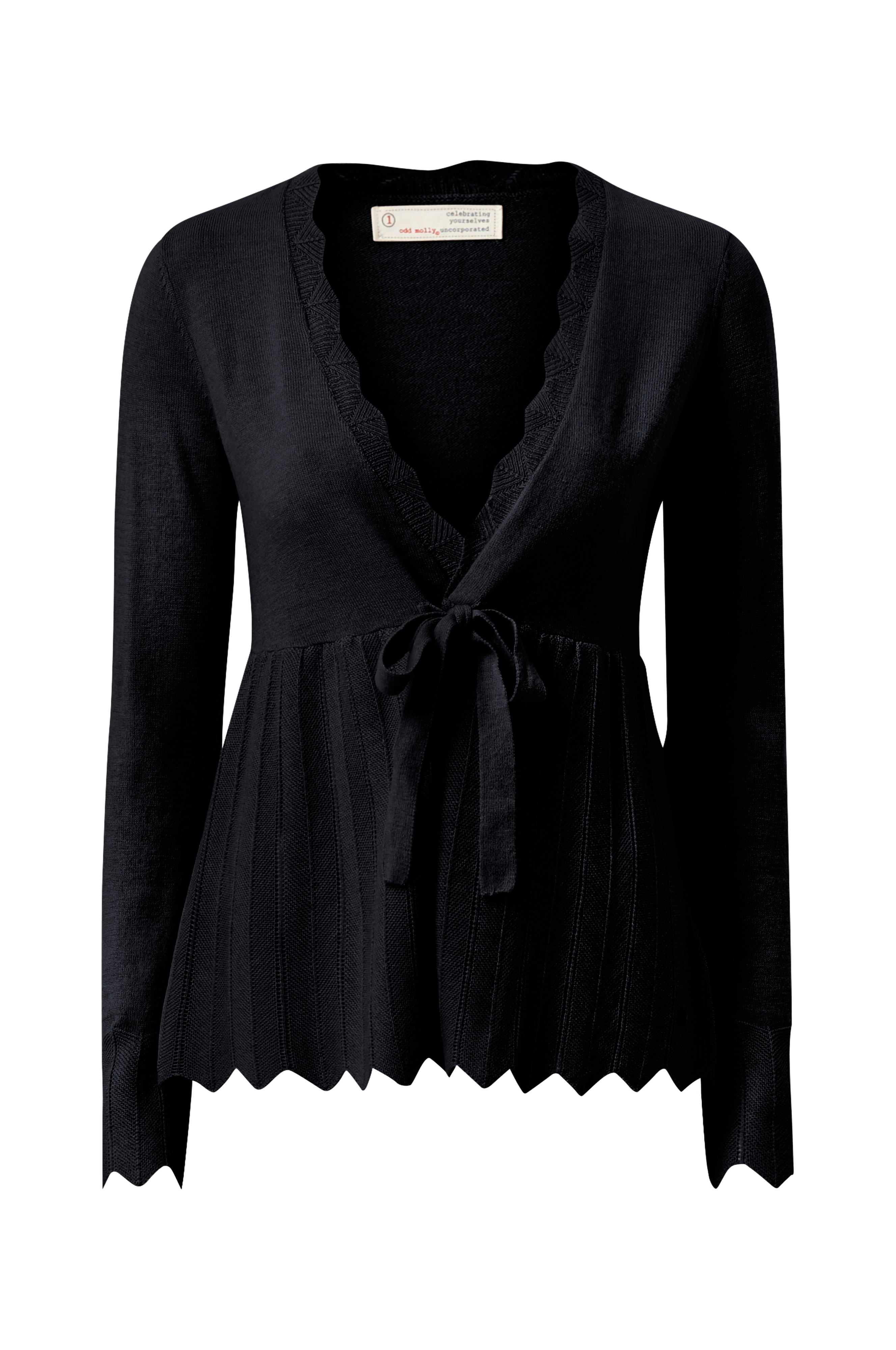 • Fintstrikket cardigan i uldmiks• Snøring foran• Rynket udskæring ved taljen