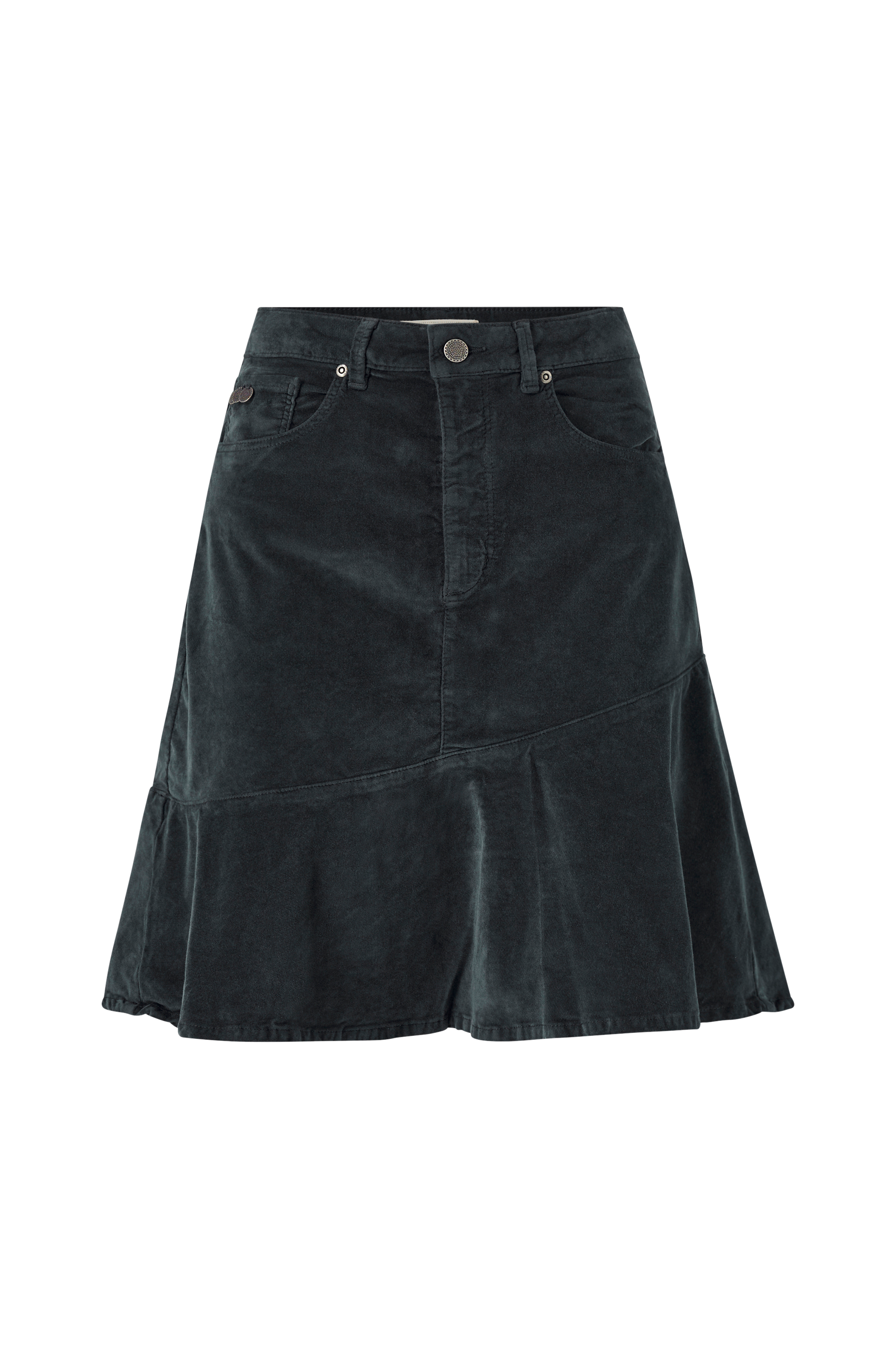 • Figursyet model i fløjl• Jeanslommer foran• Diagonal volant nederst• Længde: 48 cm i størrelse 1