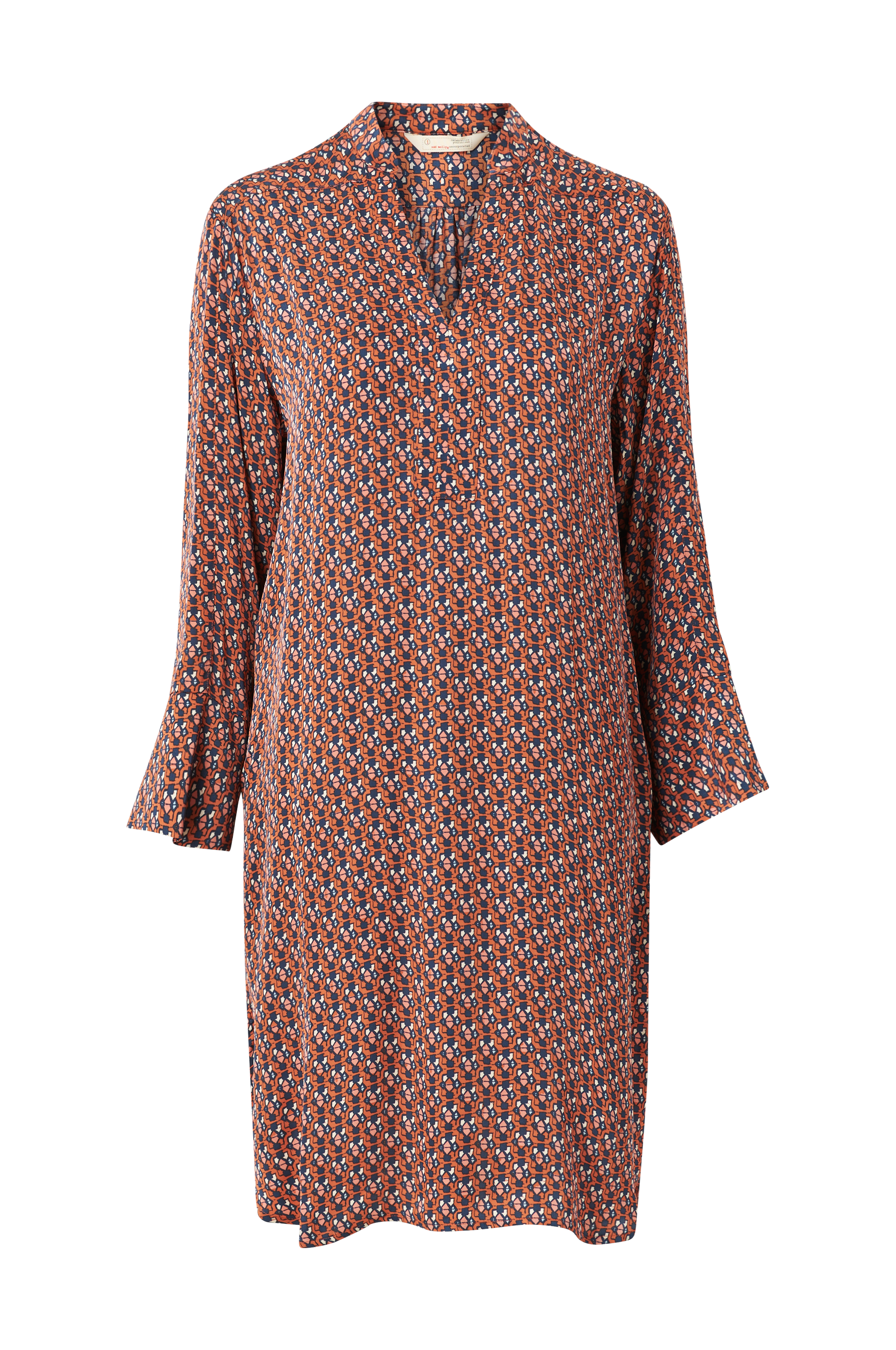 • Uformel model i satin• Påsyet kant omkring nakken med v-udskæring foran• Samling oppe bagved• Langt ærme med svaj• Indlagte sidelommer• Afrundede slidser nede i siderne• Længde: 104 cm i størrelse 1