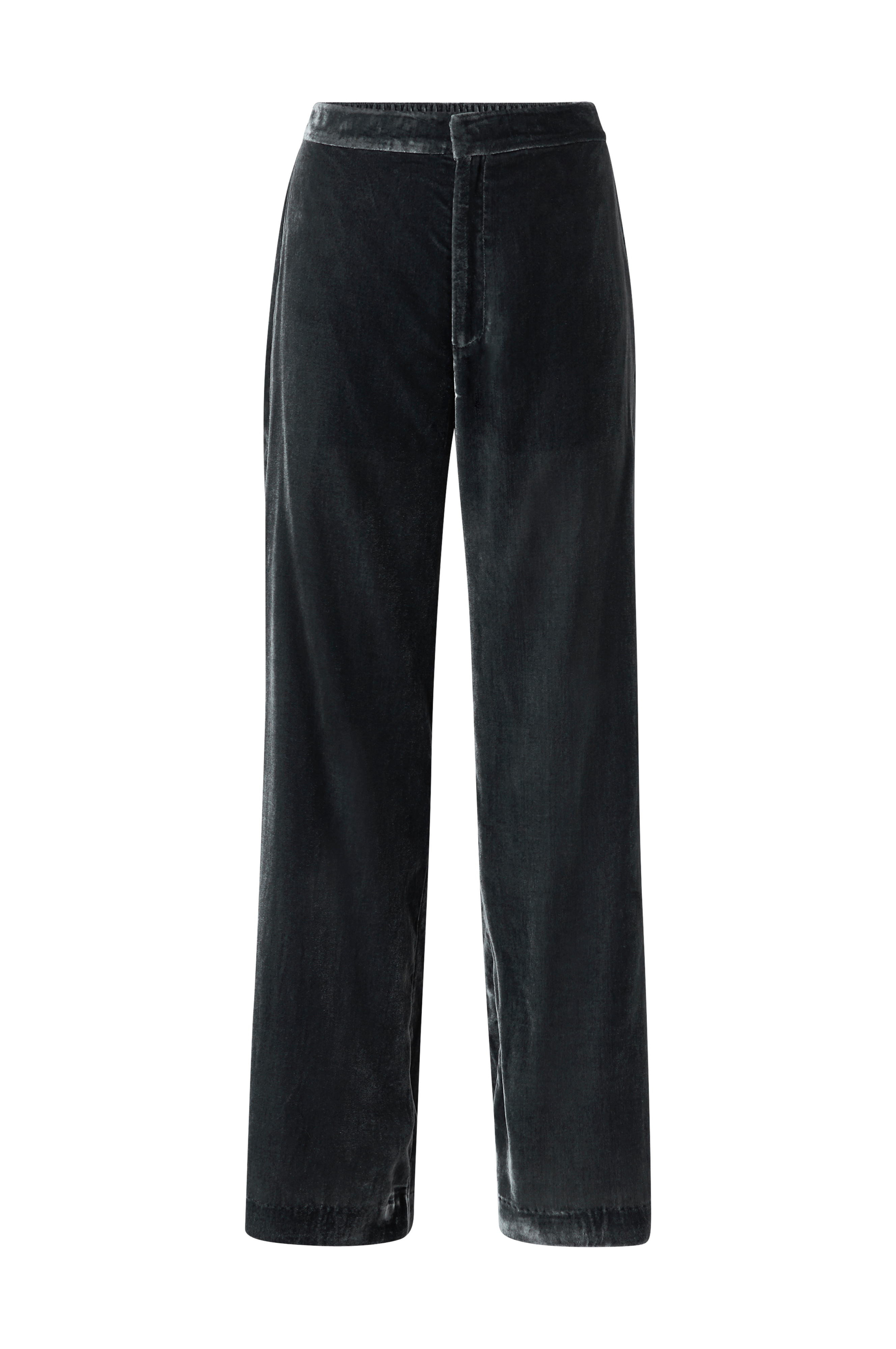 Velourbukser Giselle Pants fra Odd Molly i vævet, skinnende velour. Vide ben, elastisk talje og lynlåsgylp med hægte og malle. Indvendig benlængde ca. 78 cm i str. 1.