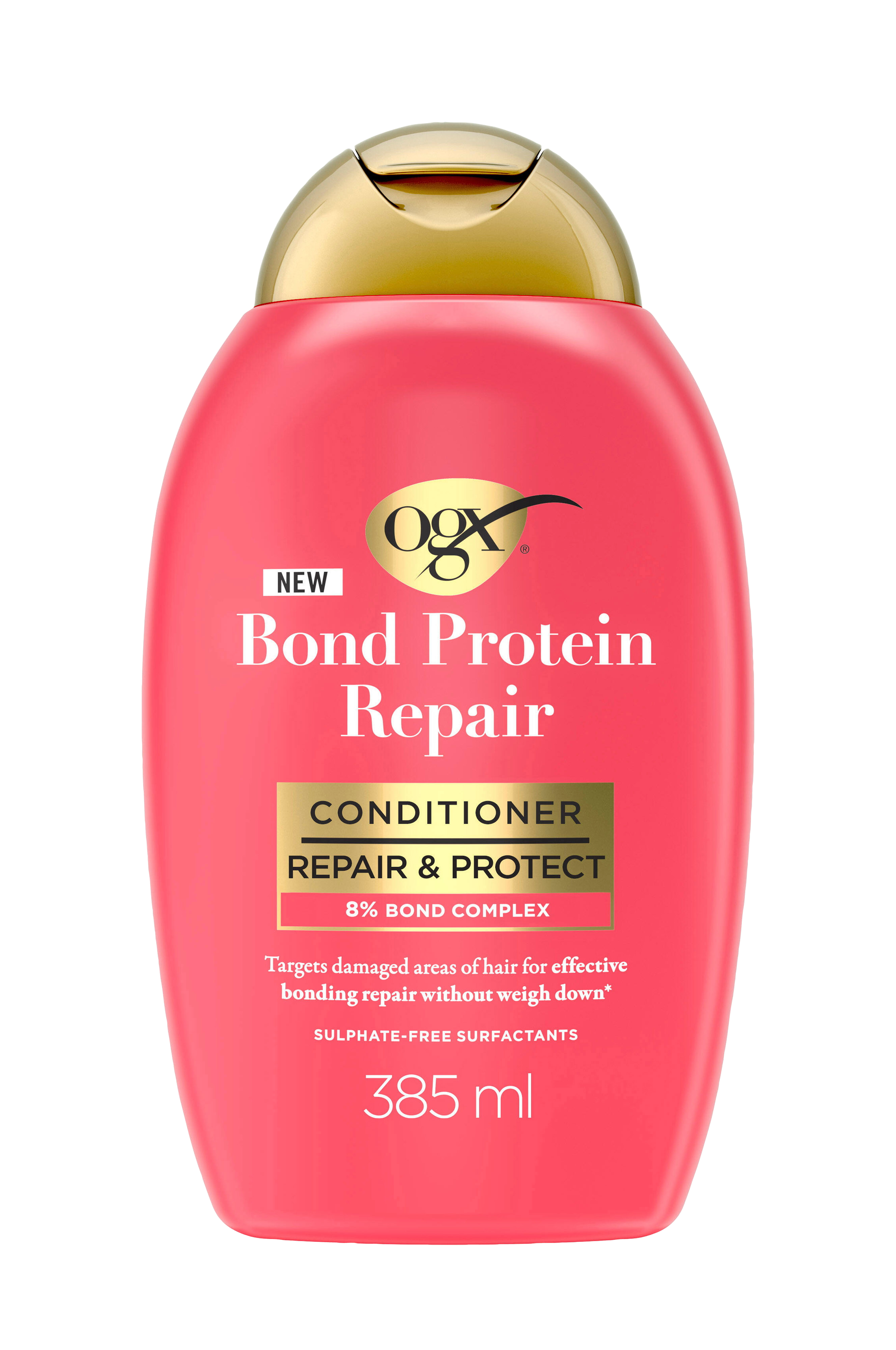 Giv dit hår den pleje, det har brug for med Ogx Bond Protein Repair Lightweight conditioner - en reparerende og beskyttende balsam, specielt formuleret til tørt, beskadiget og skrøbeligt hår. Beriget med Ogx Bond Complex, formlen retter sig mod beskadigede hårstrå for effektivt at reparere og styrke hårets struktur - uden at tynges det.