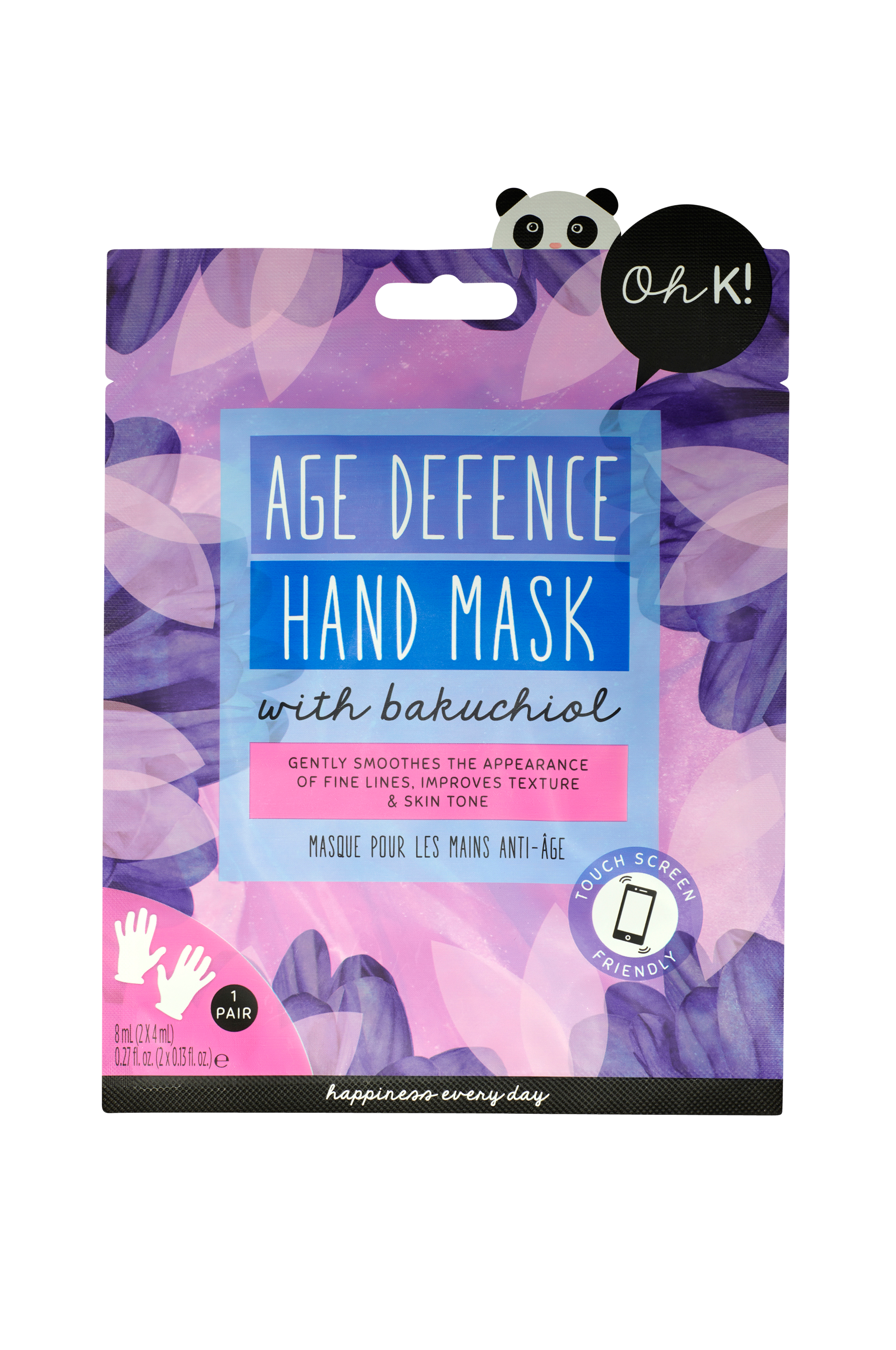 En maske til hænderne som er fyldt med bakuchiol for en mild men effektiv maskeoplevelse, som reducerer fine linjer, fugter huden og forbedrer teksturen og tonen på hænderne. Bakuchiol er kendt for at være et naturligt alternativ til A-vitamin. A-vitamin hjælper med at øge celleproduktionen, reducere hyperpigmentering og forbedre udseendet på fine linjer og rynker. Masken indeholder også ingrediensen squalane, som er en 100 % plantebaseret ingrediens, der holder på fugt, beroliger og beskytter huden.