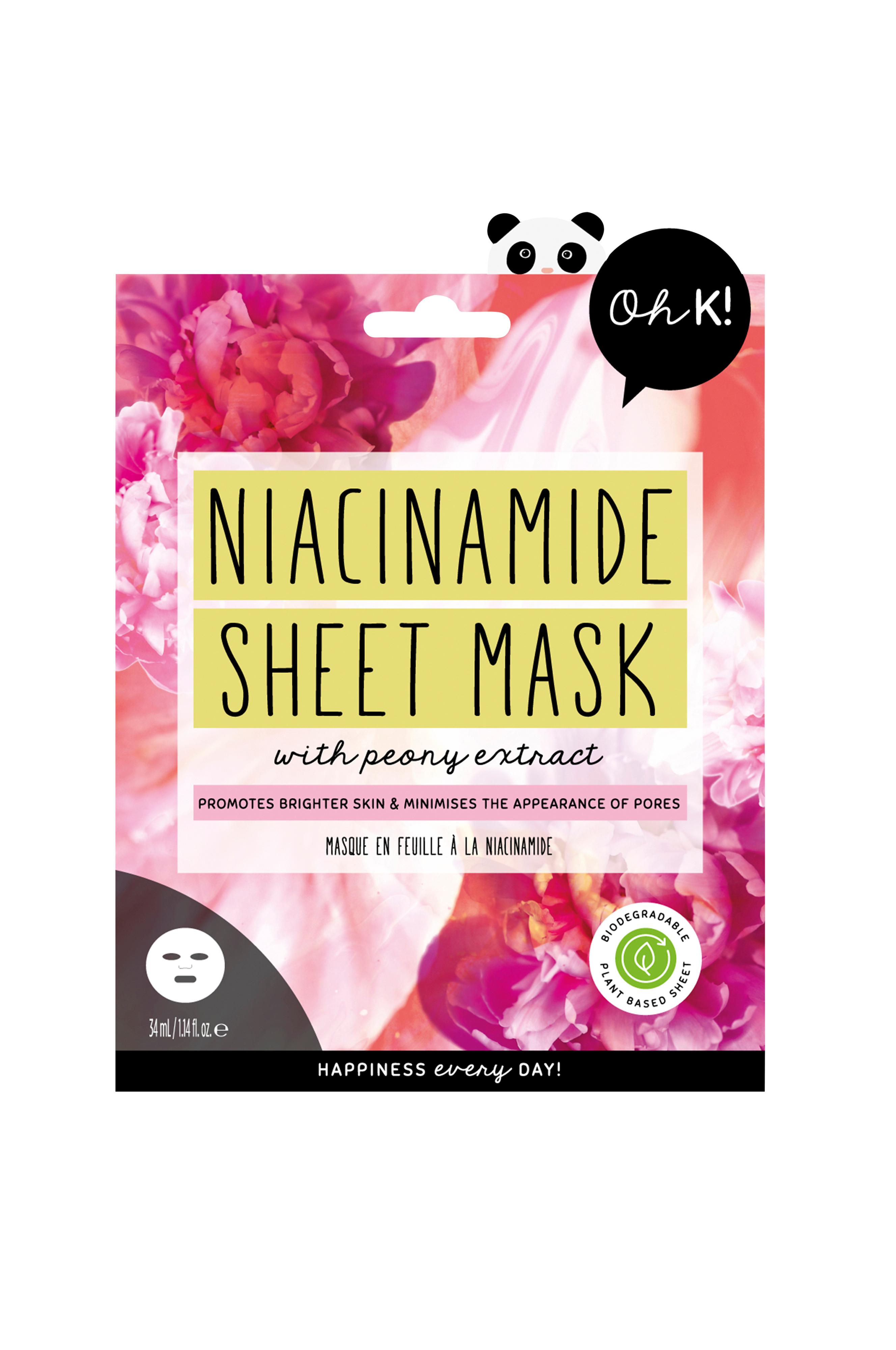 En kraftfuld og aktiv maske beriget med mirakelingrediensen niacinamid. Niacinamid er en form for vitamin B3 som blandt andet giver en mere jævn hudtone. Den hjælper også med at reducere rødmen, hyperpigmentering, porer og fine linjer samt er meget fugtgivende. Masken er fremstillet af biologisk nedbrydeligt materiale, hvilket gør den miljøvenlig.