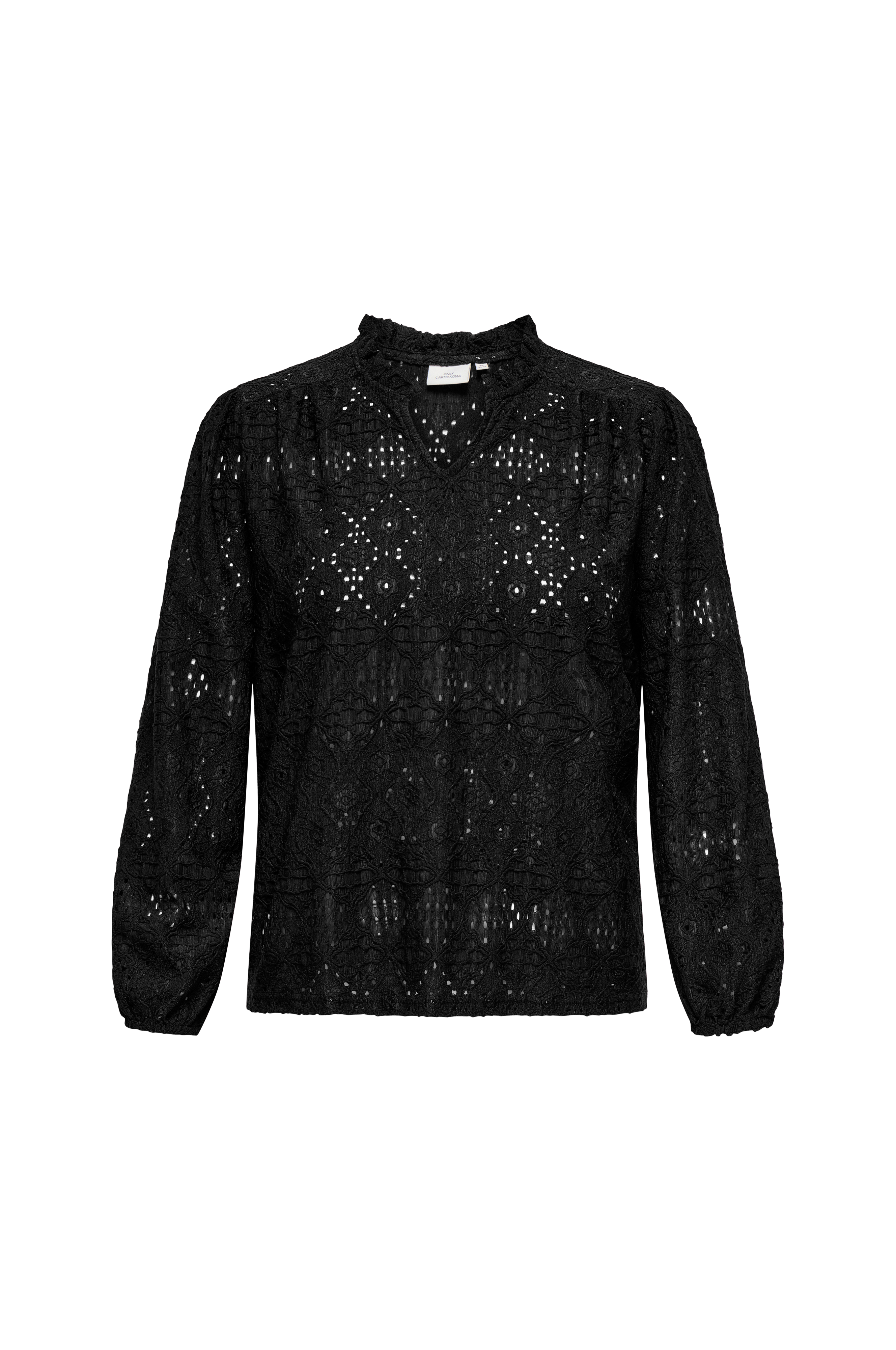 • Bluse i blonde• Volant rundt om halsen med slids foran• Lange ballonærmer• Plusstørrelser