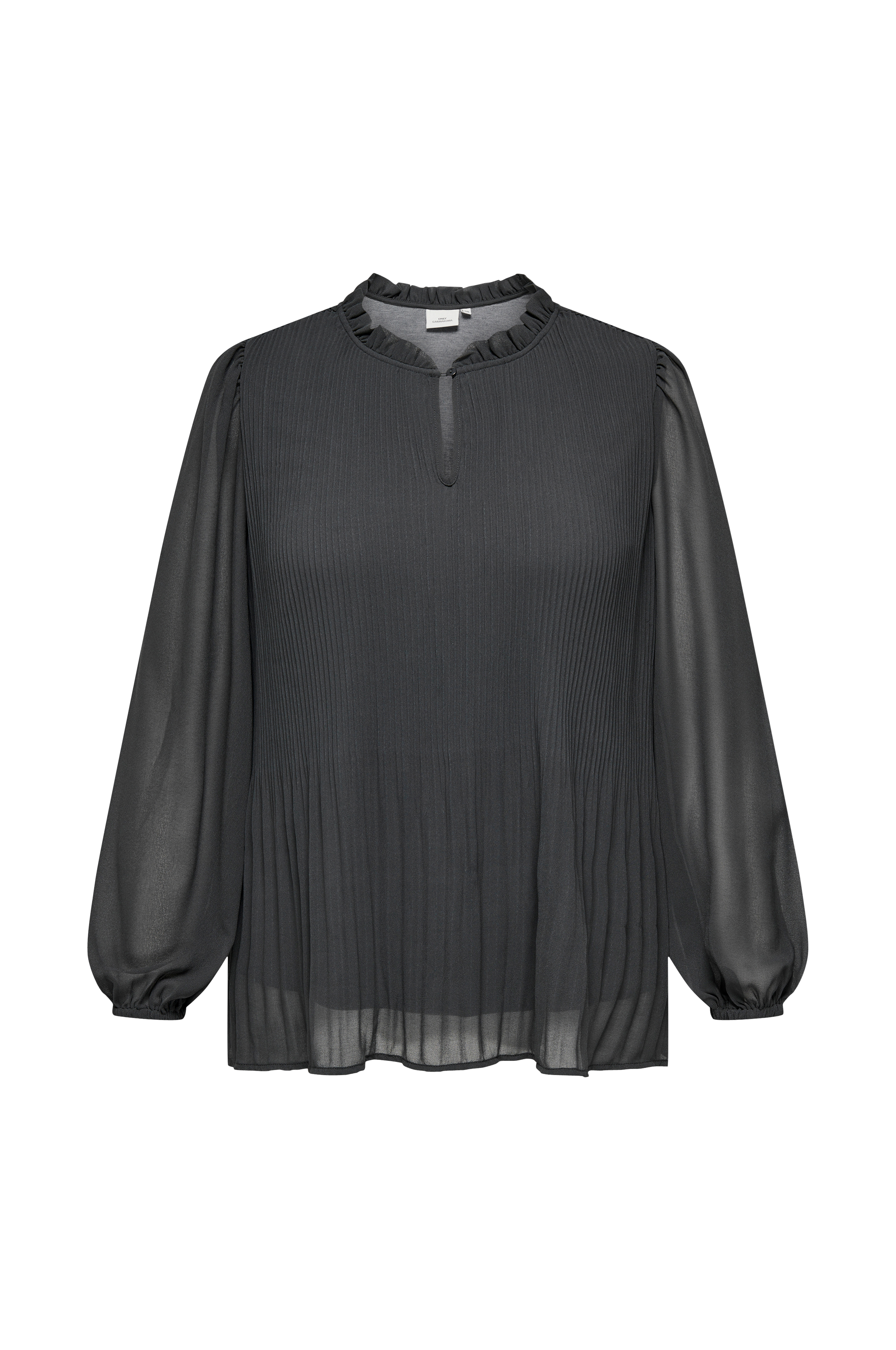 • Store størrelser• Plisseret, uformel model i chiffon• Rund hals med flæsekant og knap foran• Bredt ballonærme med elastik ved manchetterne• For i jersey